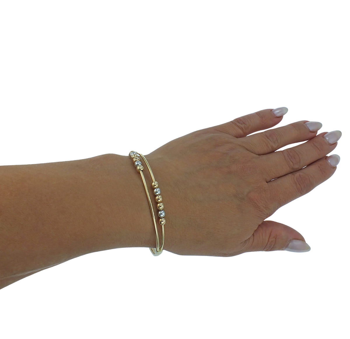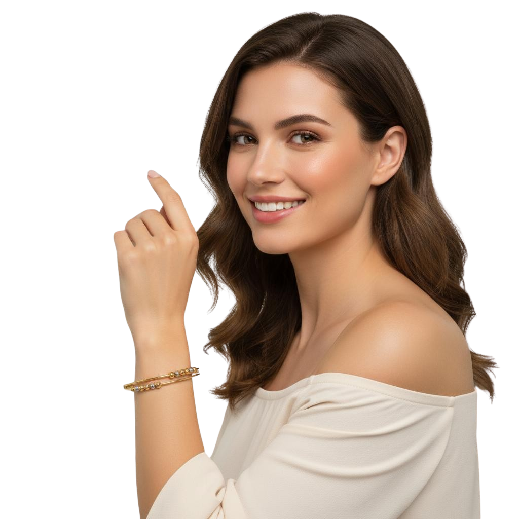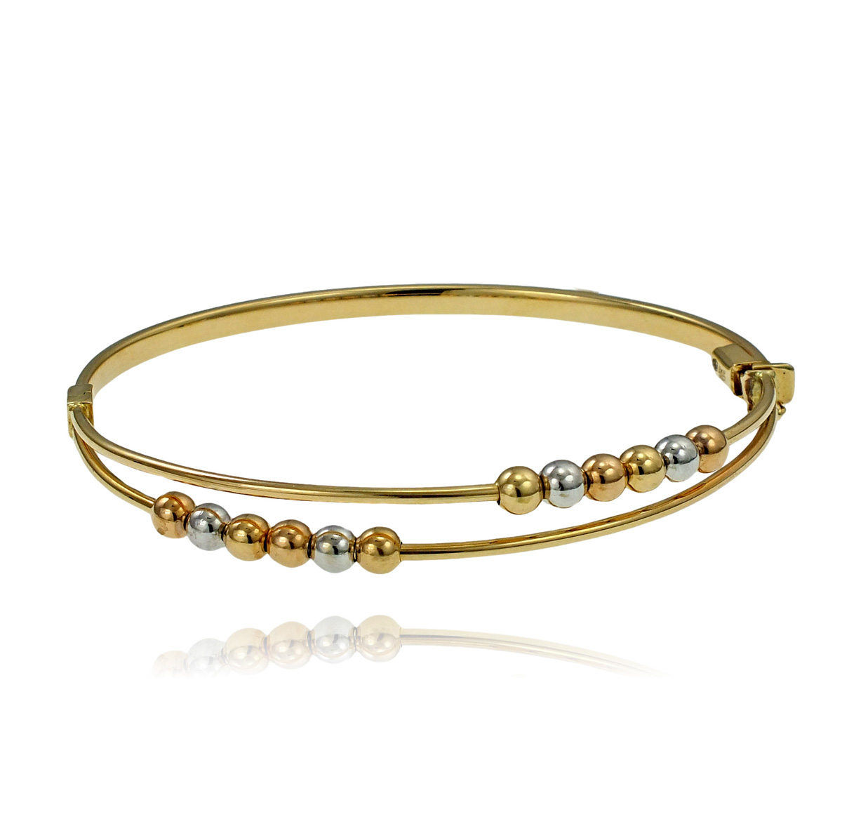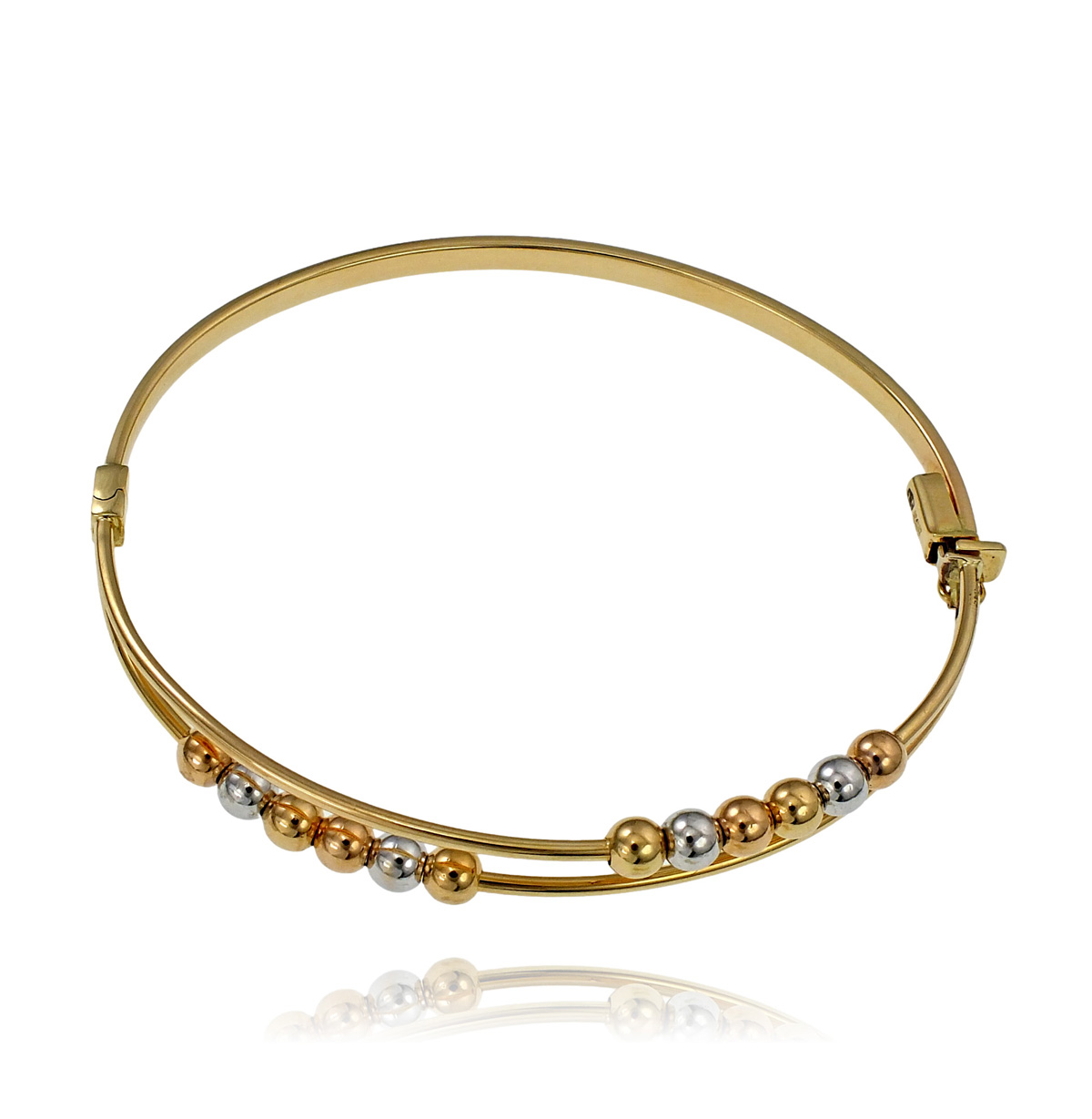 Sztywna Zapinana Złota Bransoletka z Tróikolorowymi Kulkami - Próba 585