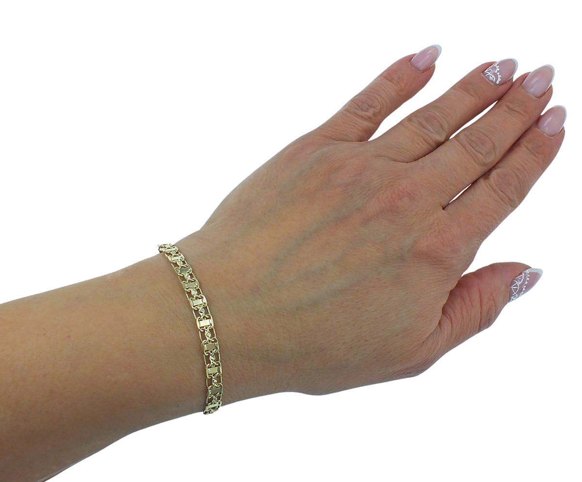 Złota Ażurowa Diamentowana Pełna Nie Dmuchana Bransoletka BISMARCK - Próba 585