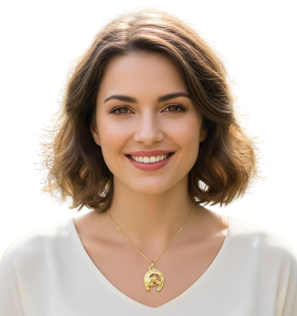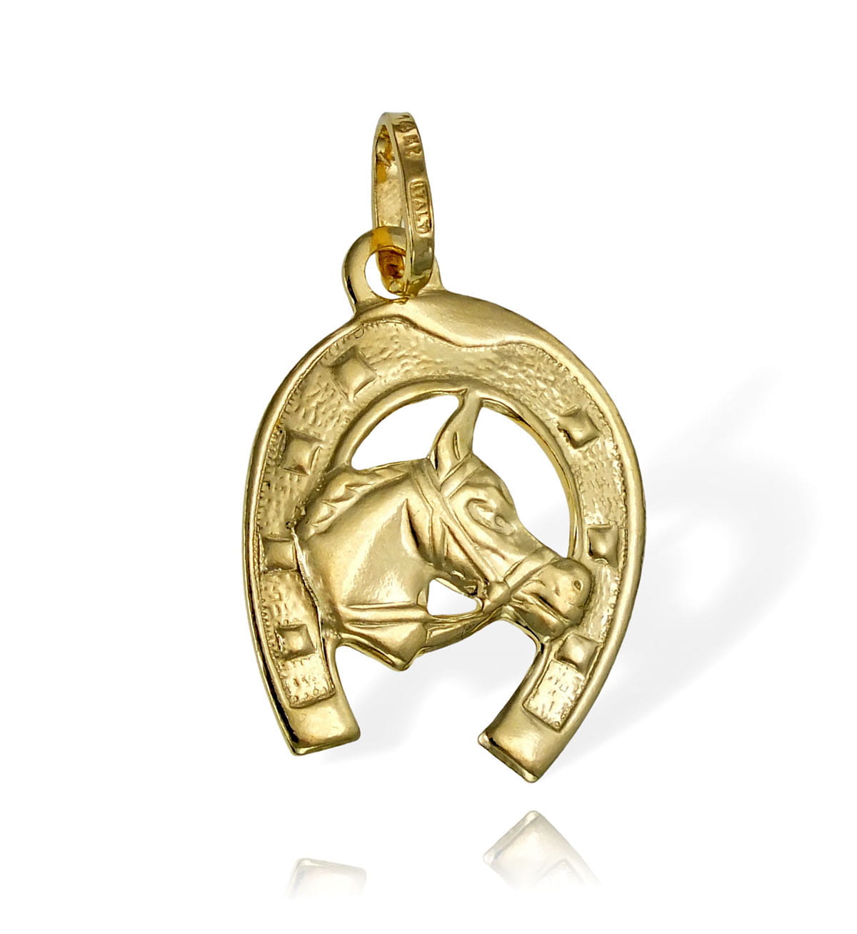 Złota Przywieszka w Kształcie Podkowy Podkowa z Wizerunkiem Głowy Konia Koń