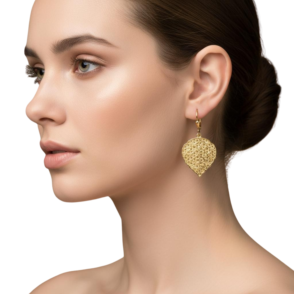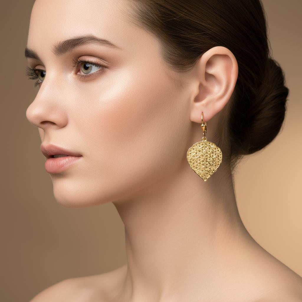 Złote Kolczyki Ażurowe Diamentowane Liście Listki