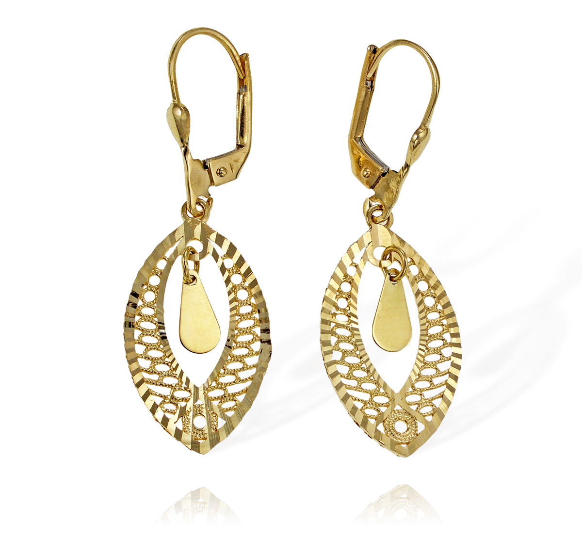 Złote Diamentowane Ażurowe Kolczyki - próba 585
