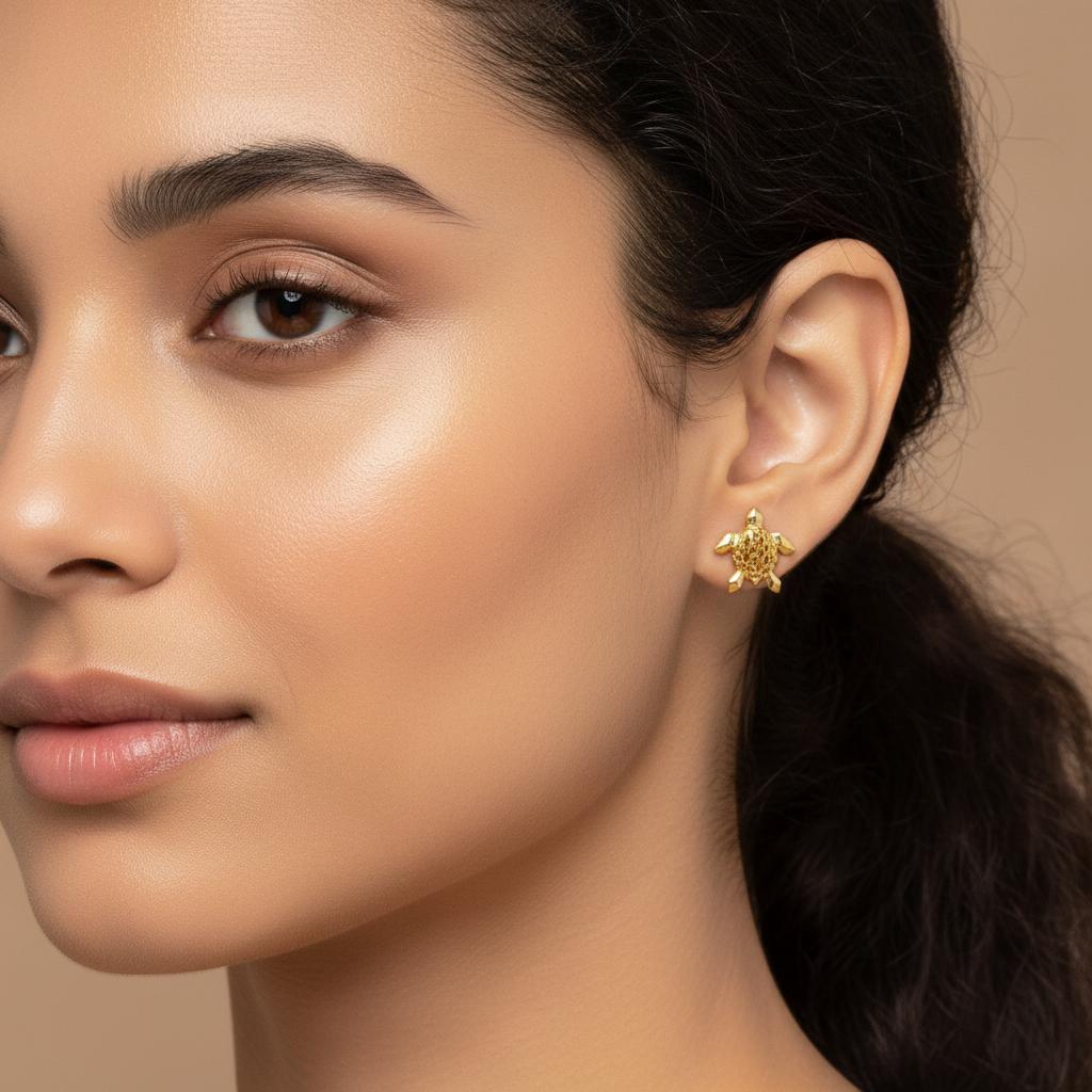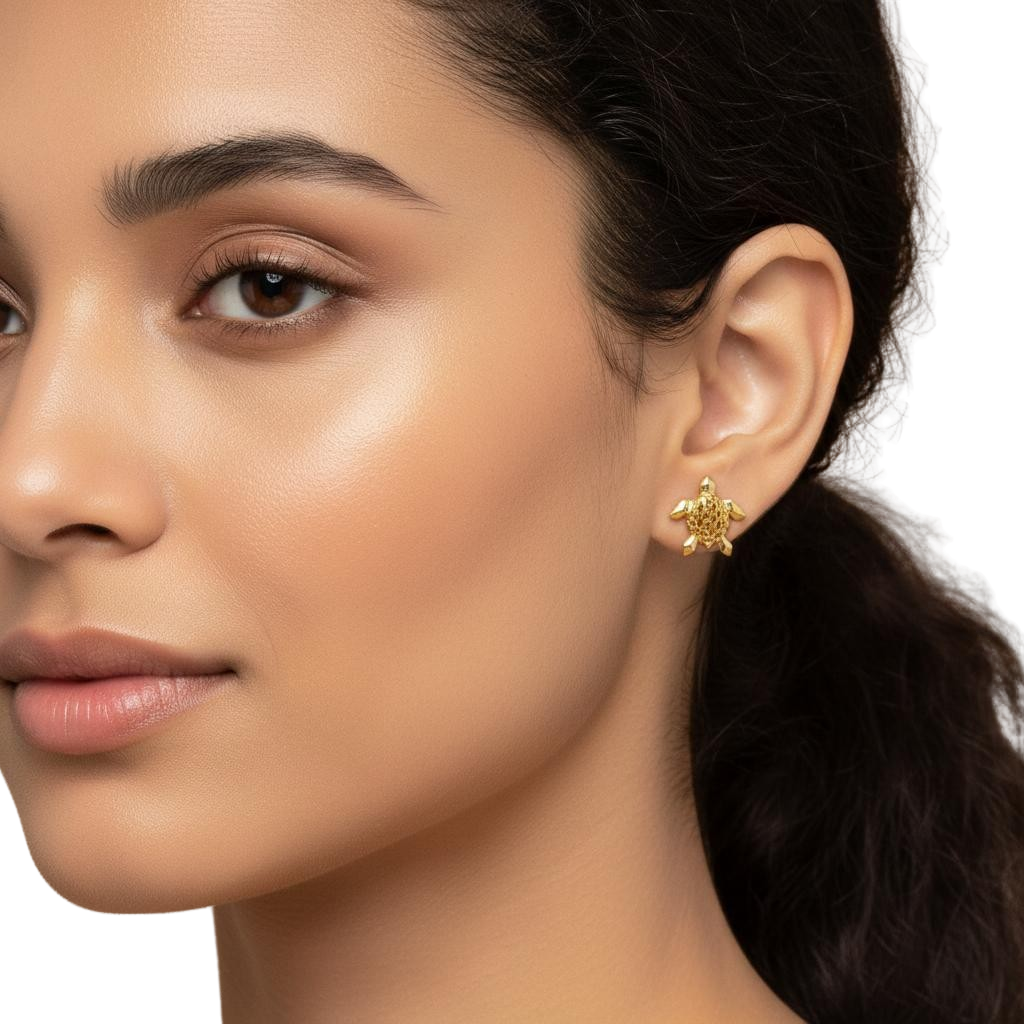 Złote Diamentowane Kolczyki Żółwiki, Żółwie na sztyft !
