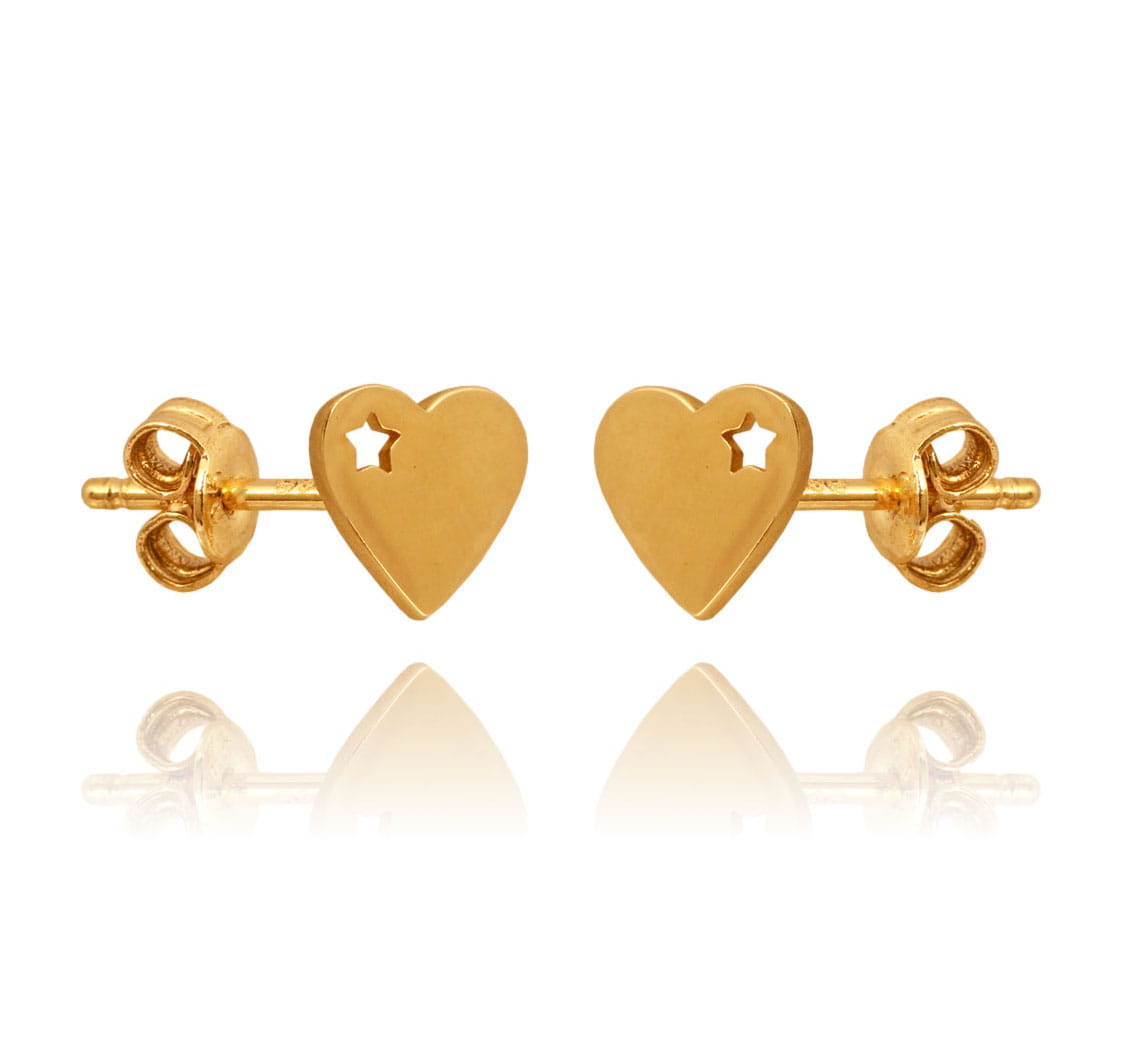 Złote Efektowne Kolczyki Gładkie Serca z Gwiazdką - próba 585