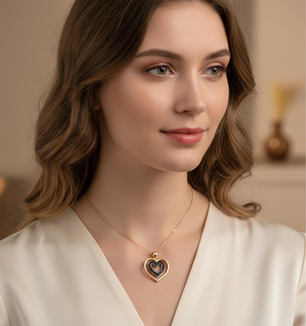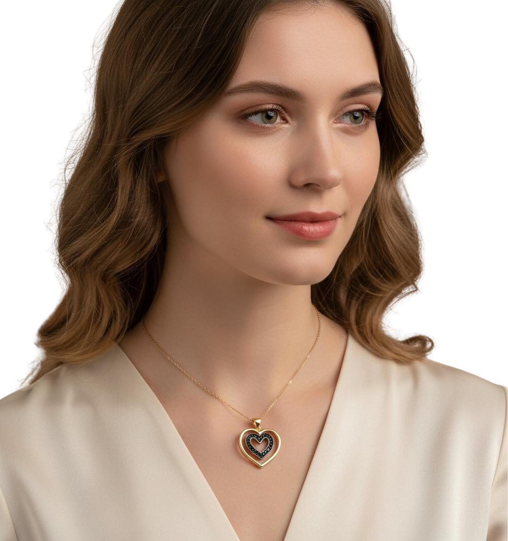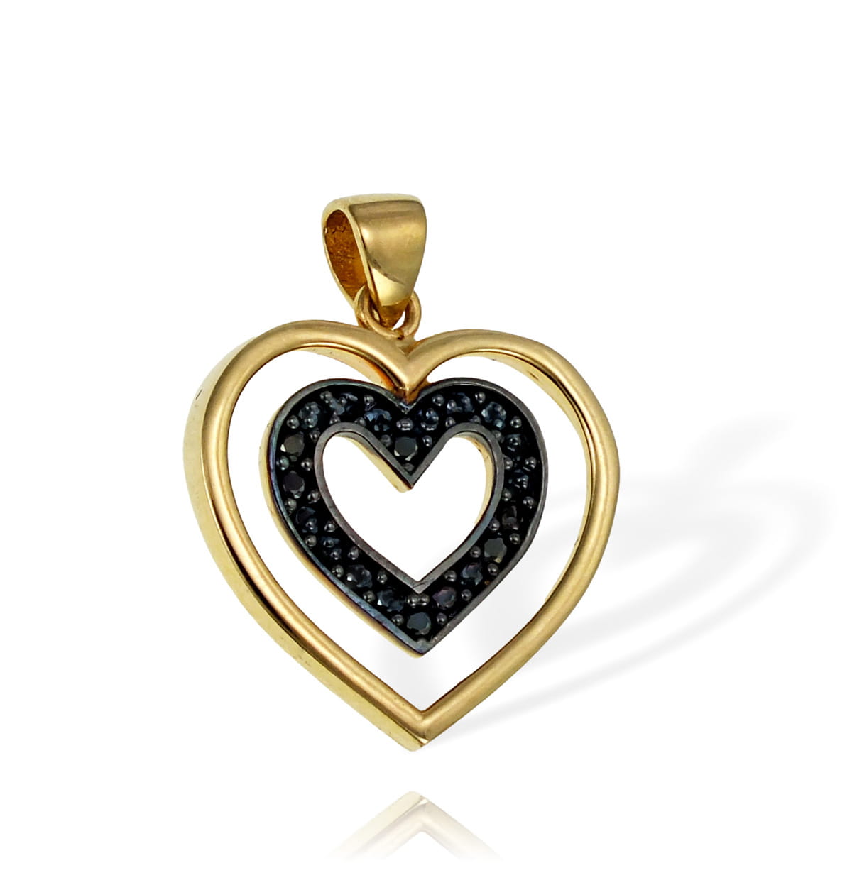 Złote Efektowne Serce z Czarnymi Cyrkoniami - Pr. 585