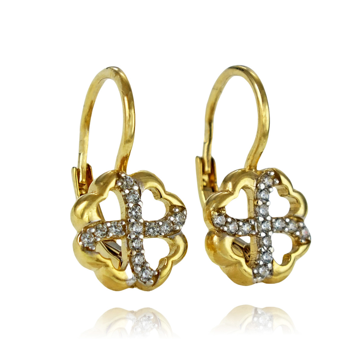 Złote Kolczyki Czterolistna Koniczynka z Cyrkoniami - próba 585