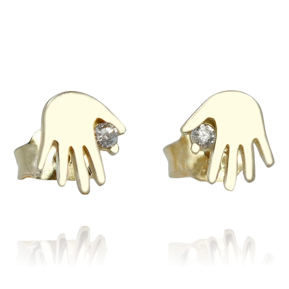 Złote Kolczyki Czułe Dłonie Ręce z Cyrkonią - pr. 585