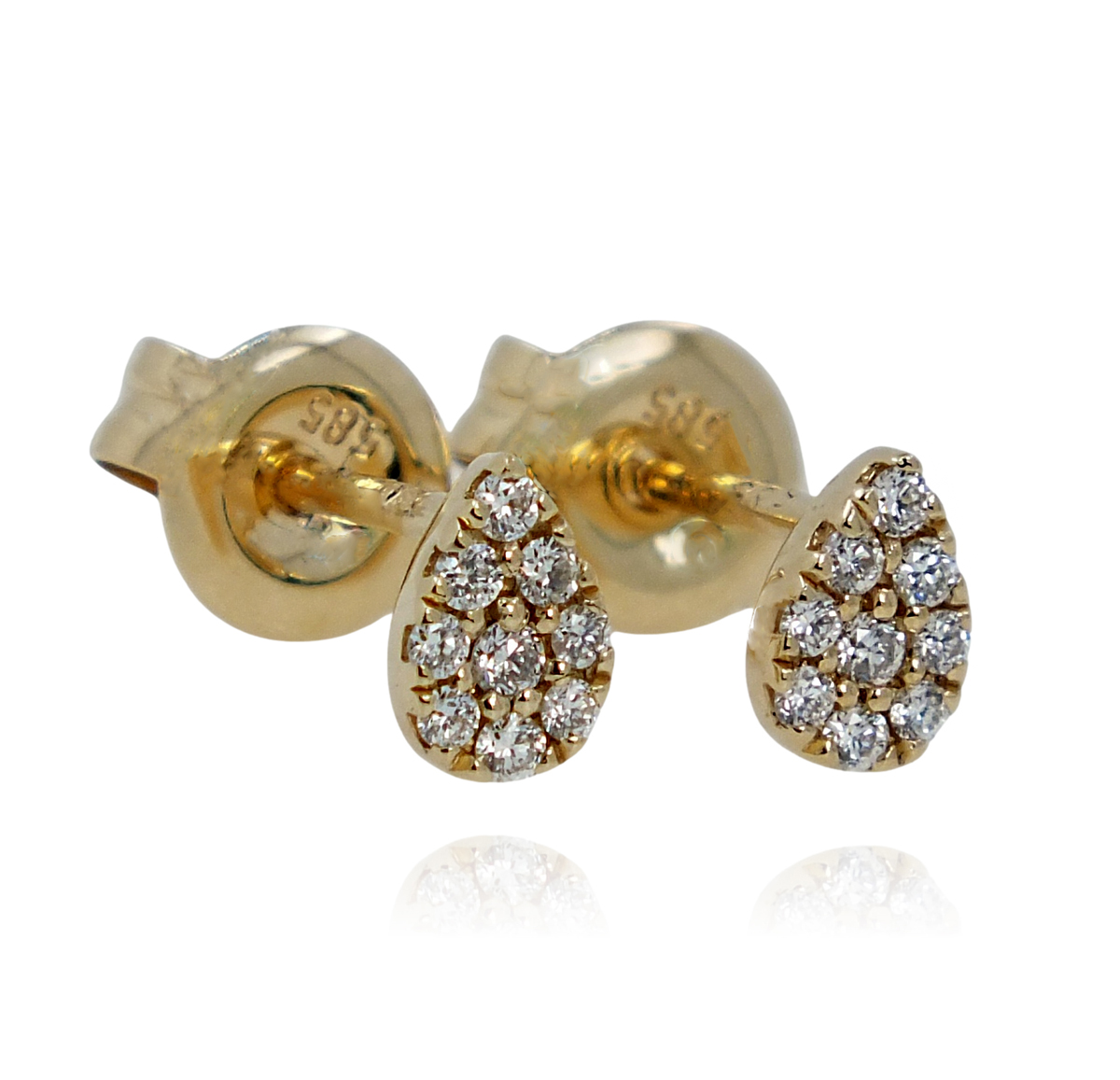 Złote Kolczyki Delikatne Krople z Diamentami Brylancikami - próba 585