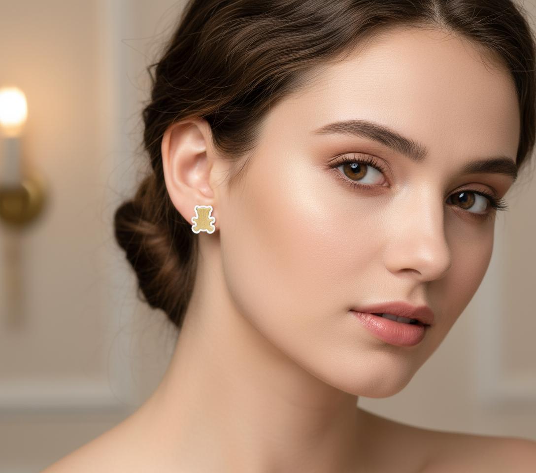 Złote Kolczyki Dwukolorowe Misie - próba 585