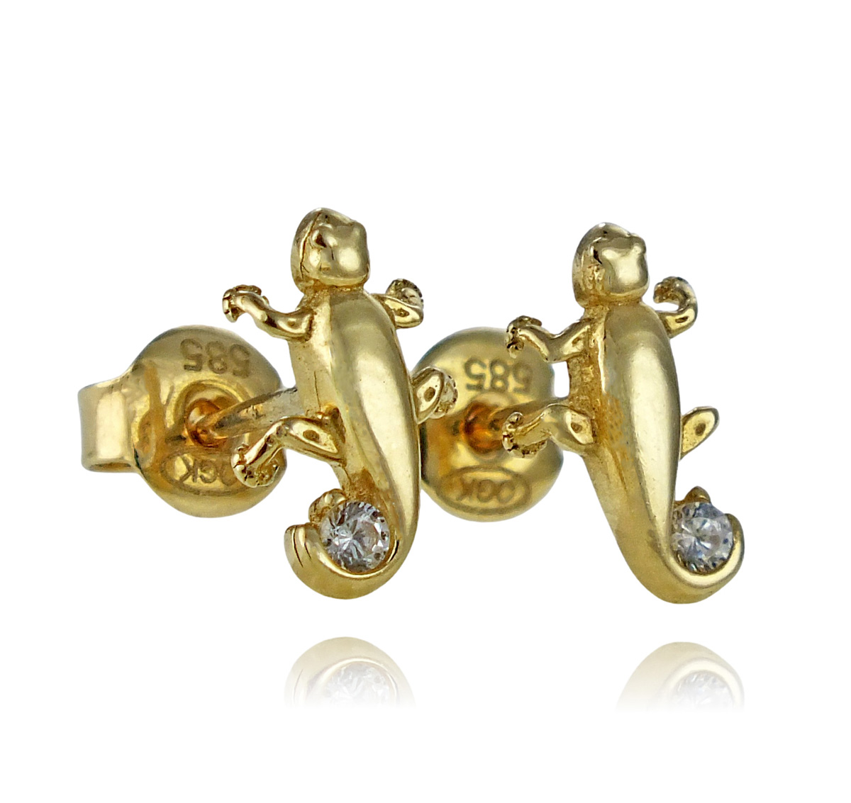 Złote Kolczyki Gekon Jaszczurka z Cyrkoniami - pr. 585