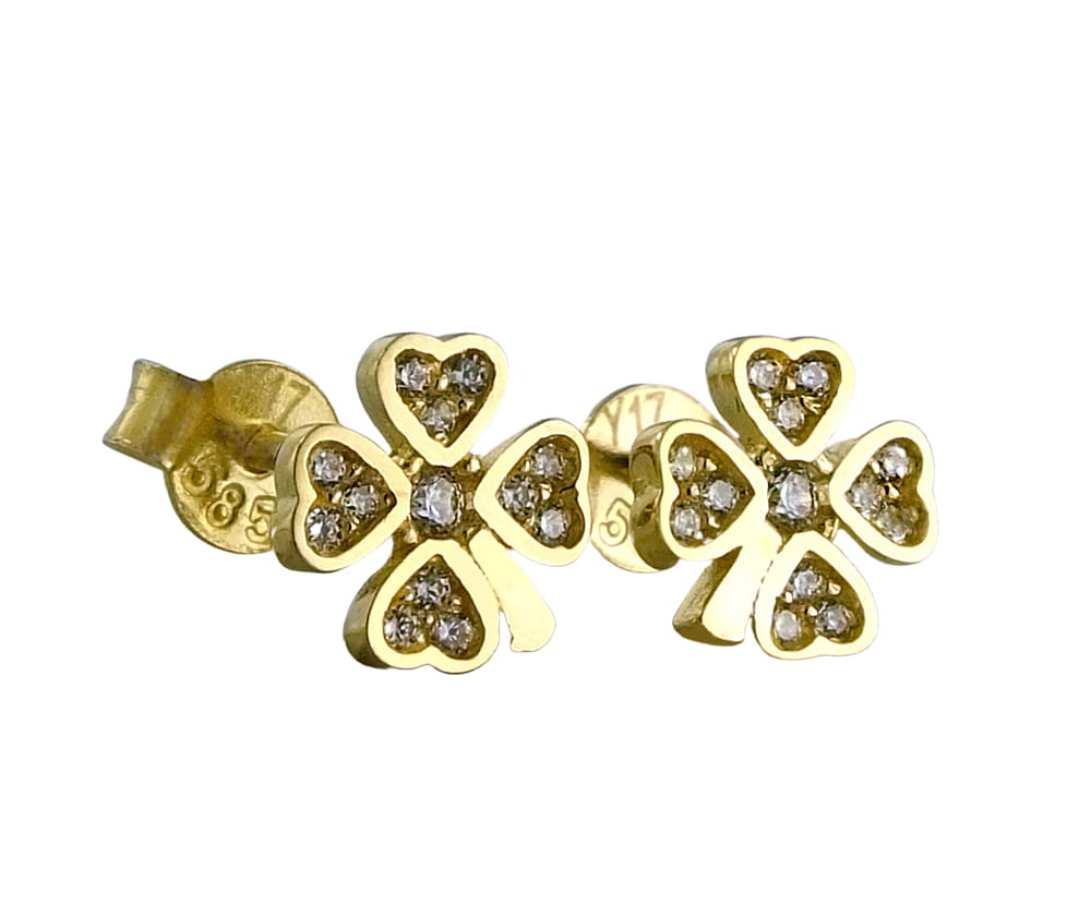 Złote Kolczyki Koniczynki z Cyrkoniami na sztyft - Próba 585 !