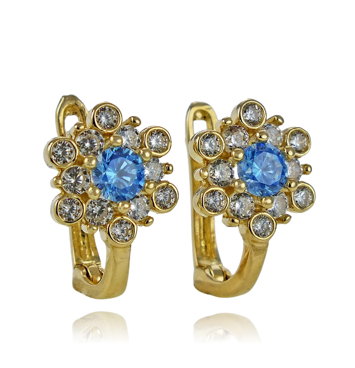 Złote Kolczyki Kwiatki Kwiatuszki z Cyrkoniami na Angliku - próba 585