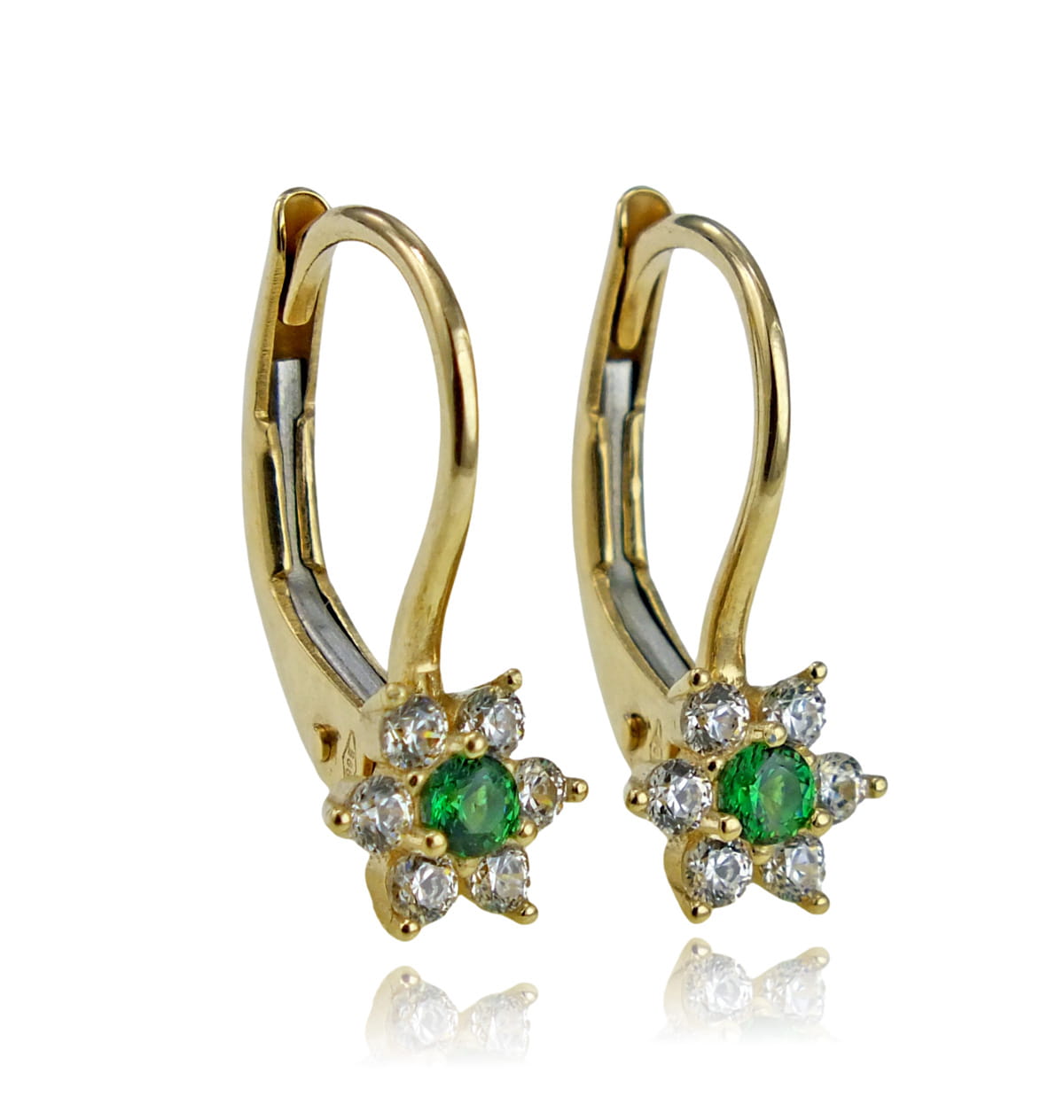 Złote Kolczyki Kwiatki Kwiatuszki z Cyrkoniami na Zatrzasku - próba 585