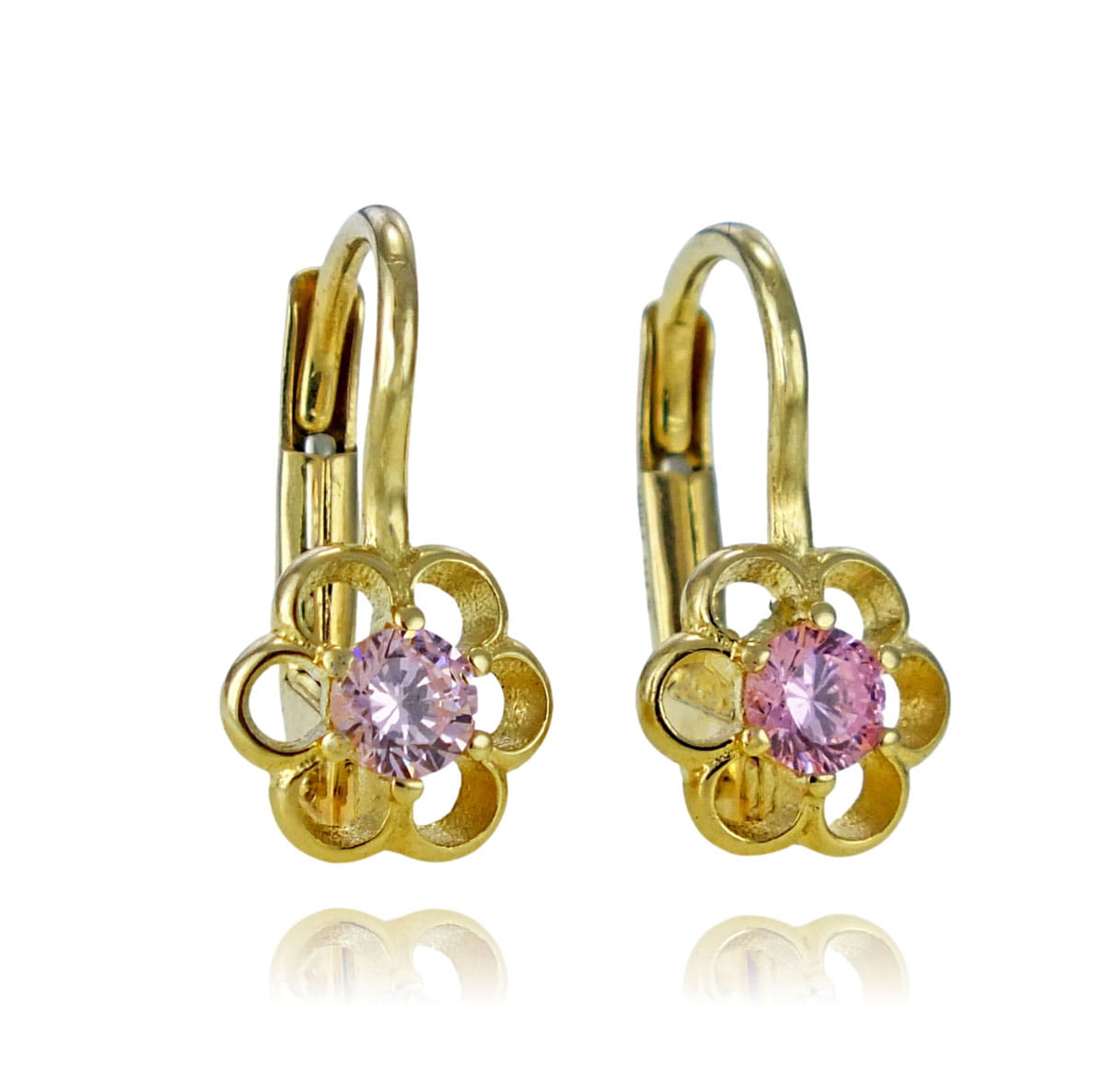 Złote Kolczyki Kwiatuszki z Różową Cyrkonią na Zatrzasku - próba 585