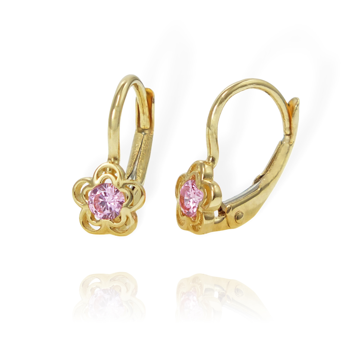 Złote Kolczyki Kwiaty Kwiatki z Różowymi Cyrkoniami !