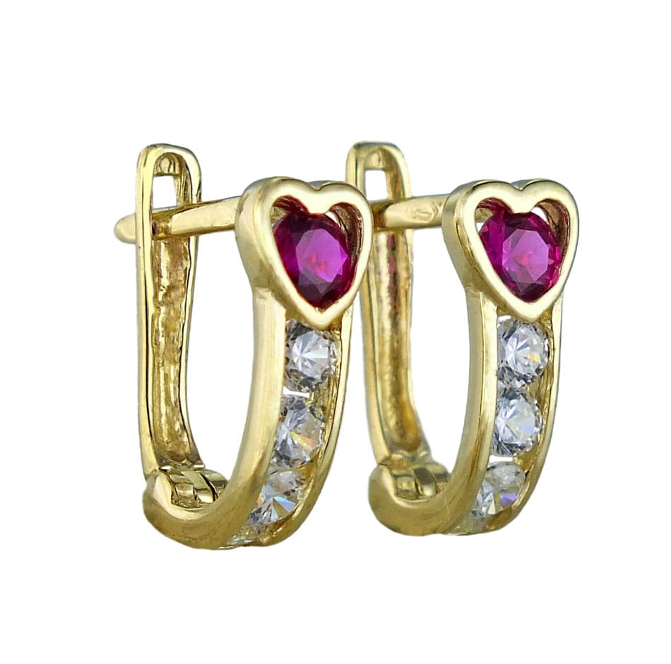 Złote Kolczyki Przecinki Serca z Cyrkoniami - próba 585