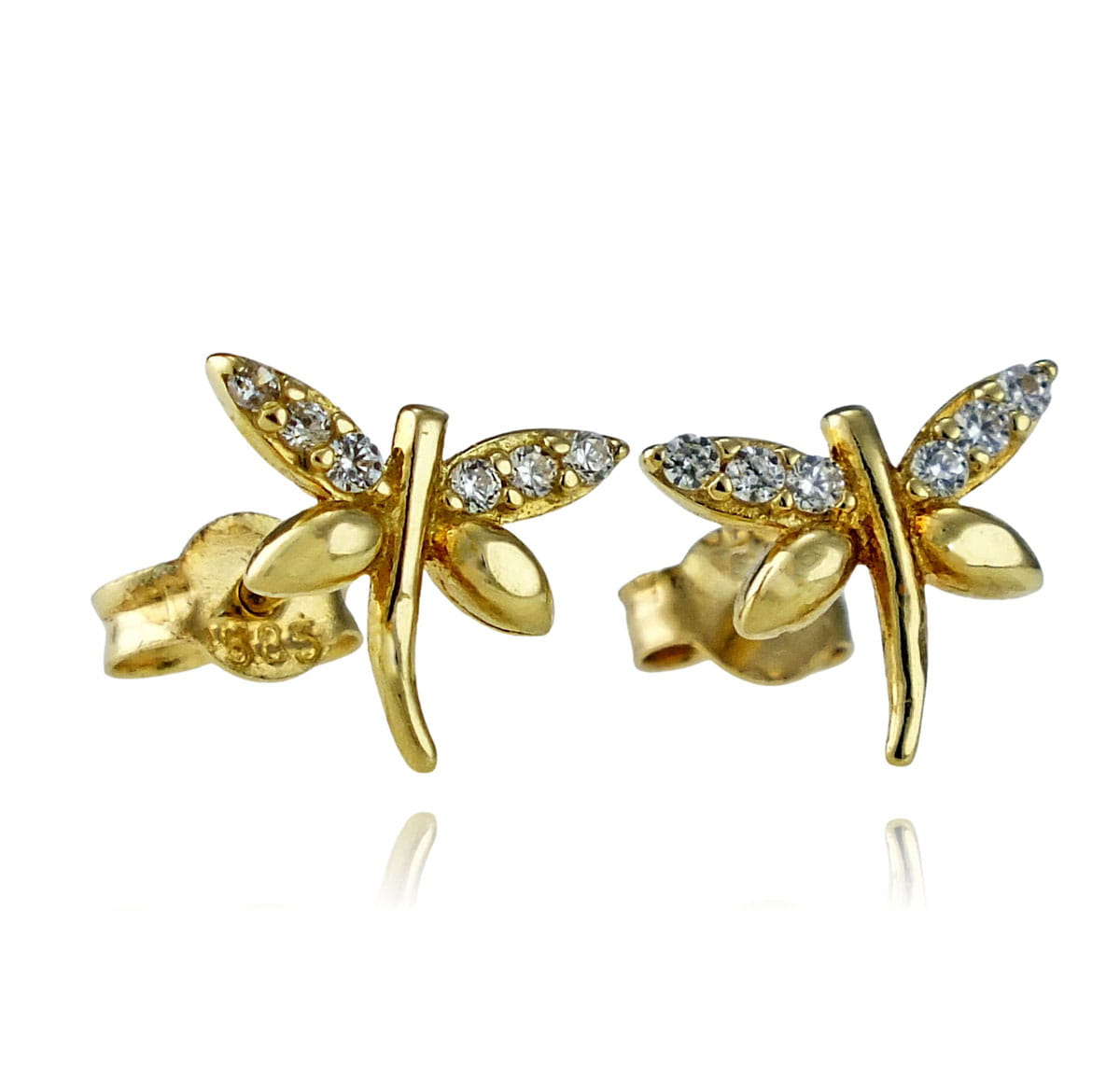 Złote Kolczyki Ważki z Cyrkoniami - próba 585