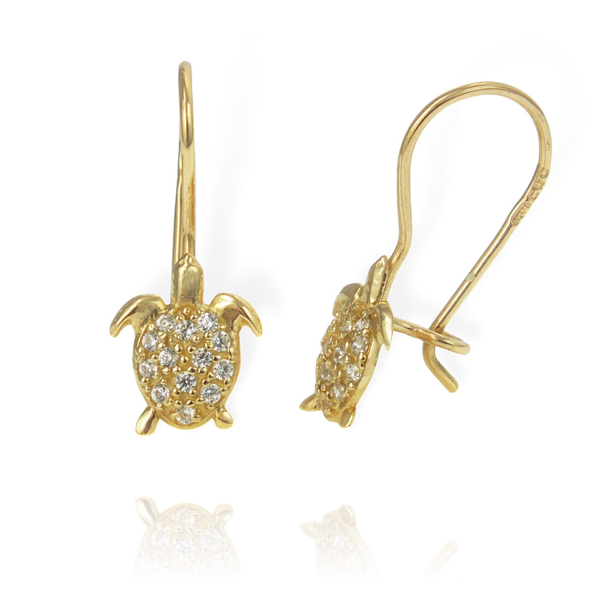 Złote Kolczyki Żółwiki Żółwie z Cyrkoniami - pr. 585
