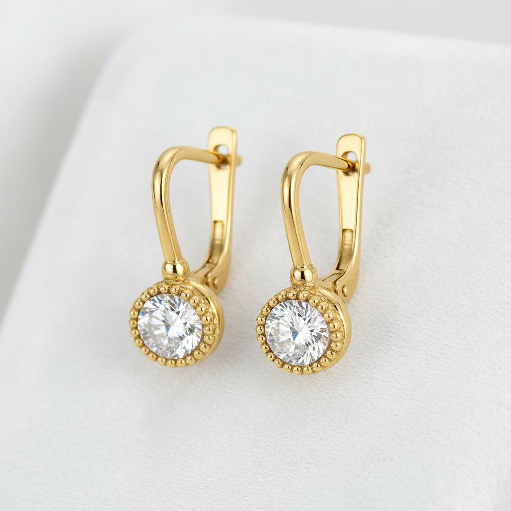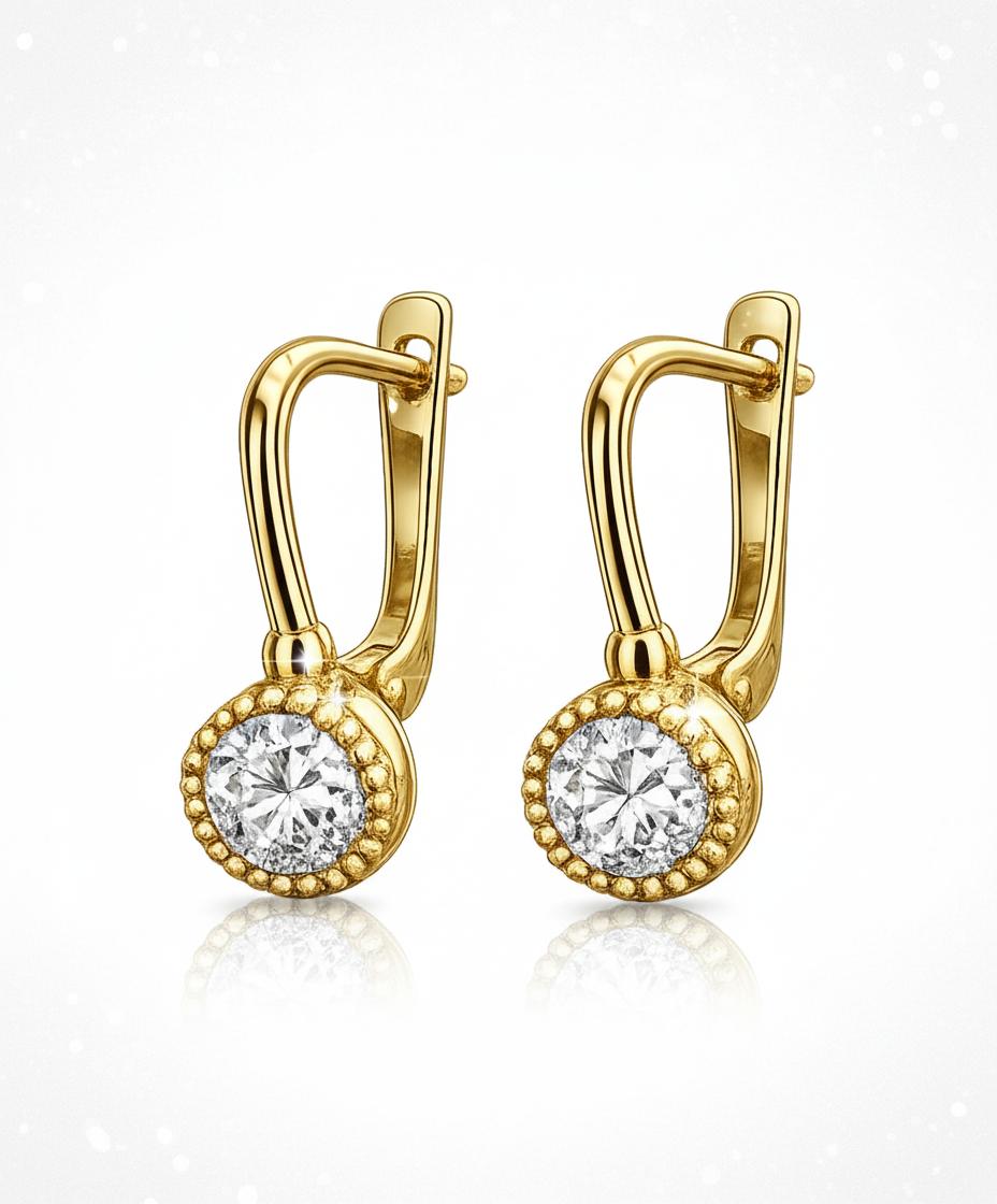 Złote Kolczyki z Cyrkonią na Zatrzasku - próba 585
