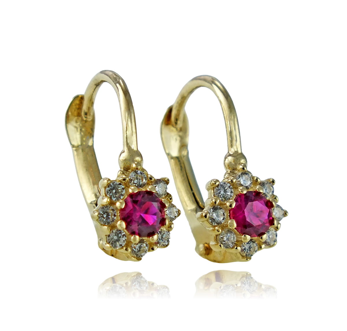 Złote Kolczyki z Cyrkoniami i Różową Cyrkonią- próba 585