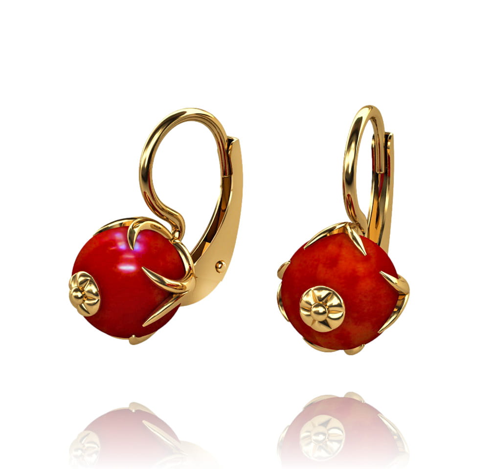 Złote Kolczyki z Naturalnym Koralem na Zatrzasku