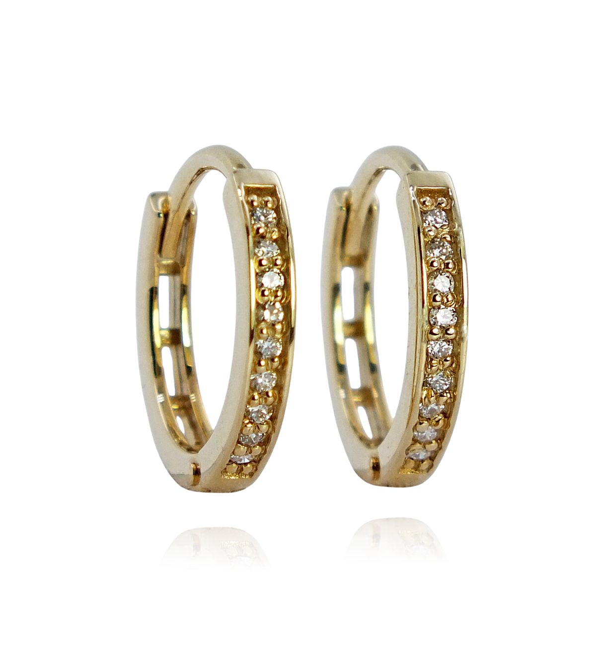 Złote Okrągłe Kolczyki Przecinki z Brylantami - próba 585