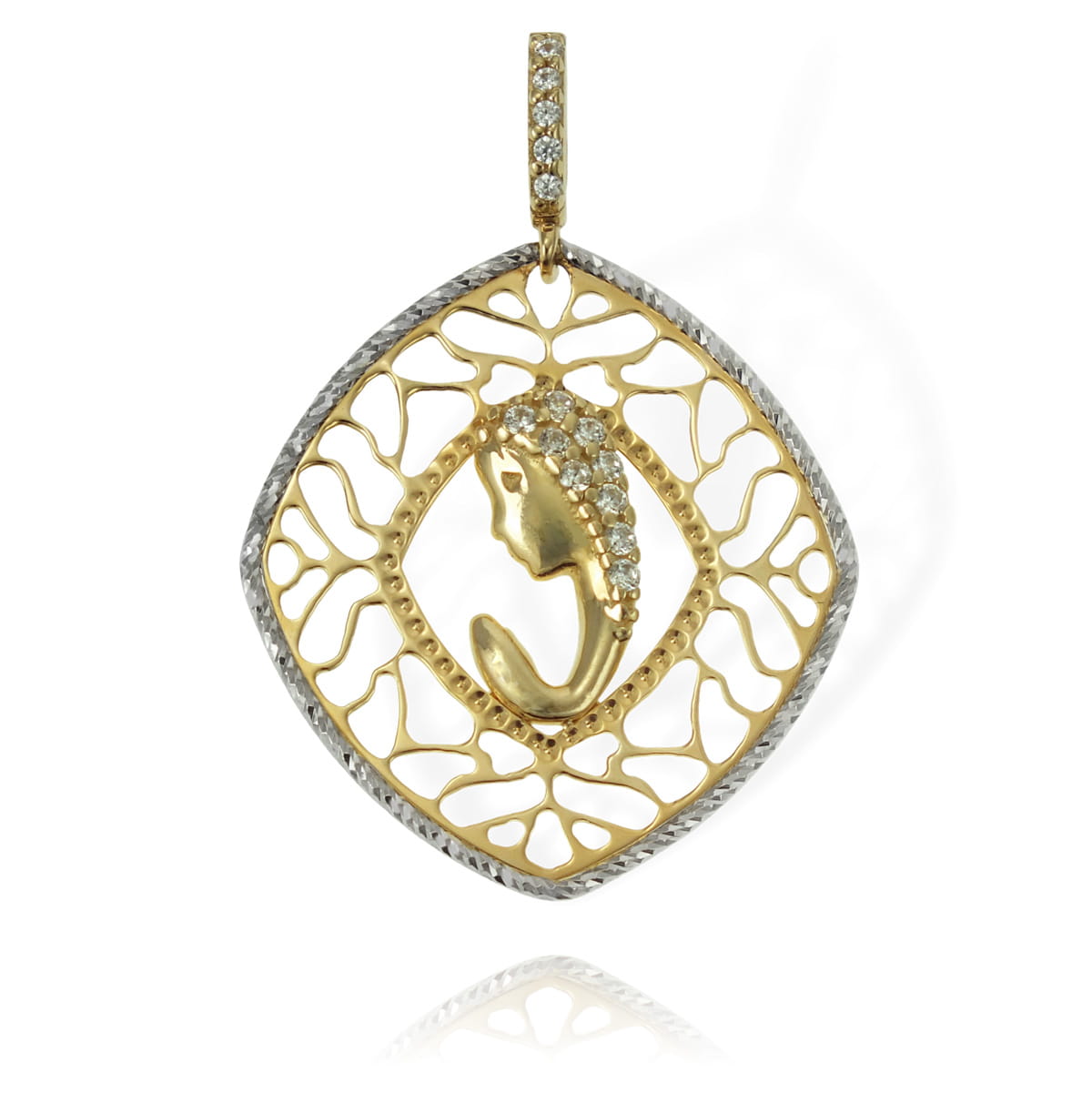 Złoty Ażurowy, Diamentowany Medalik Matka Boska z Cyrkoniami