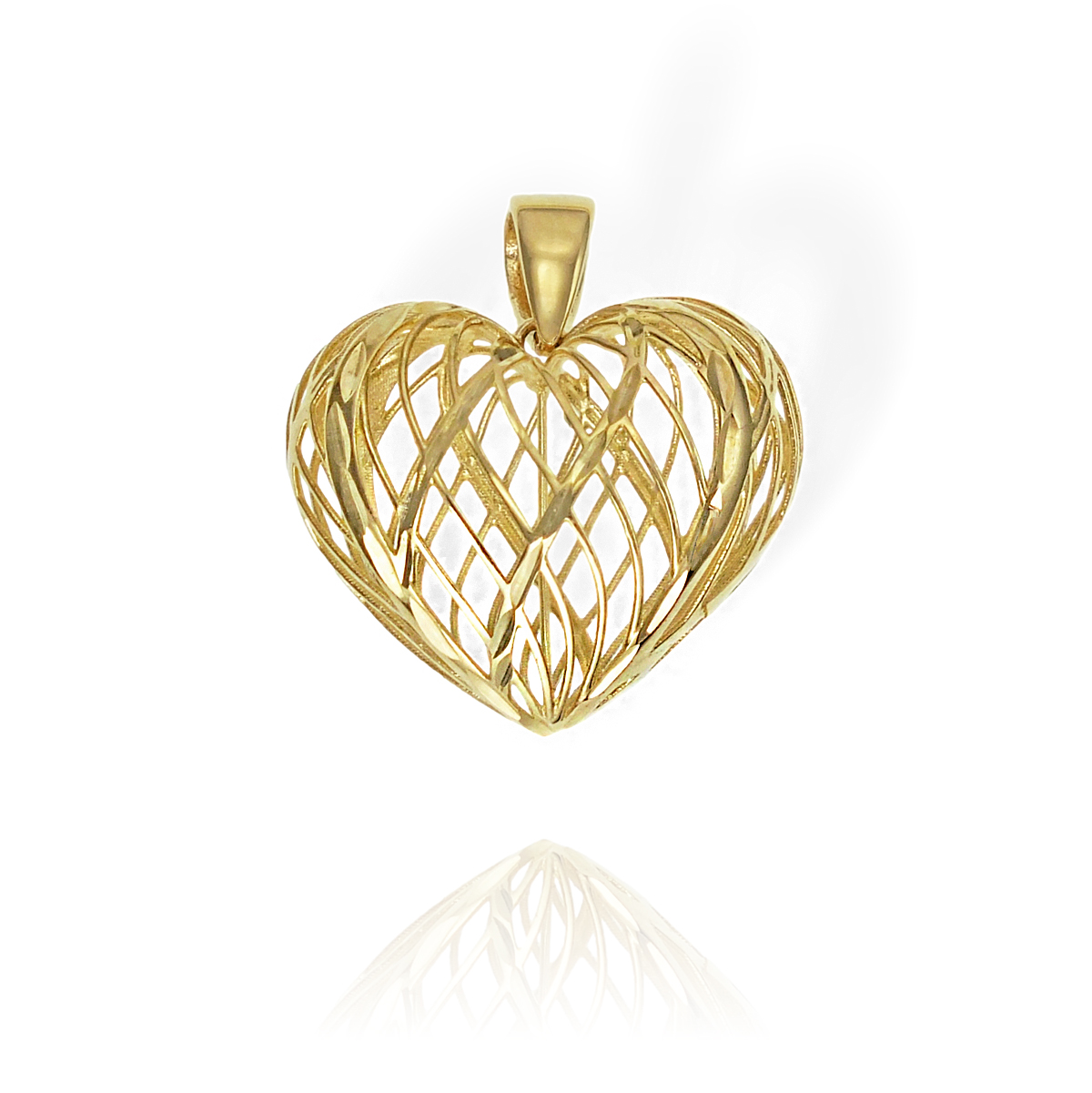 Złoty Ażurowy Diamentowany Wisiorek Serce - Pr. 585