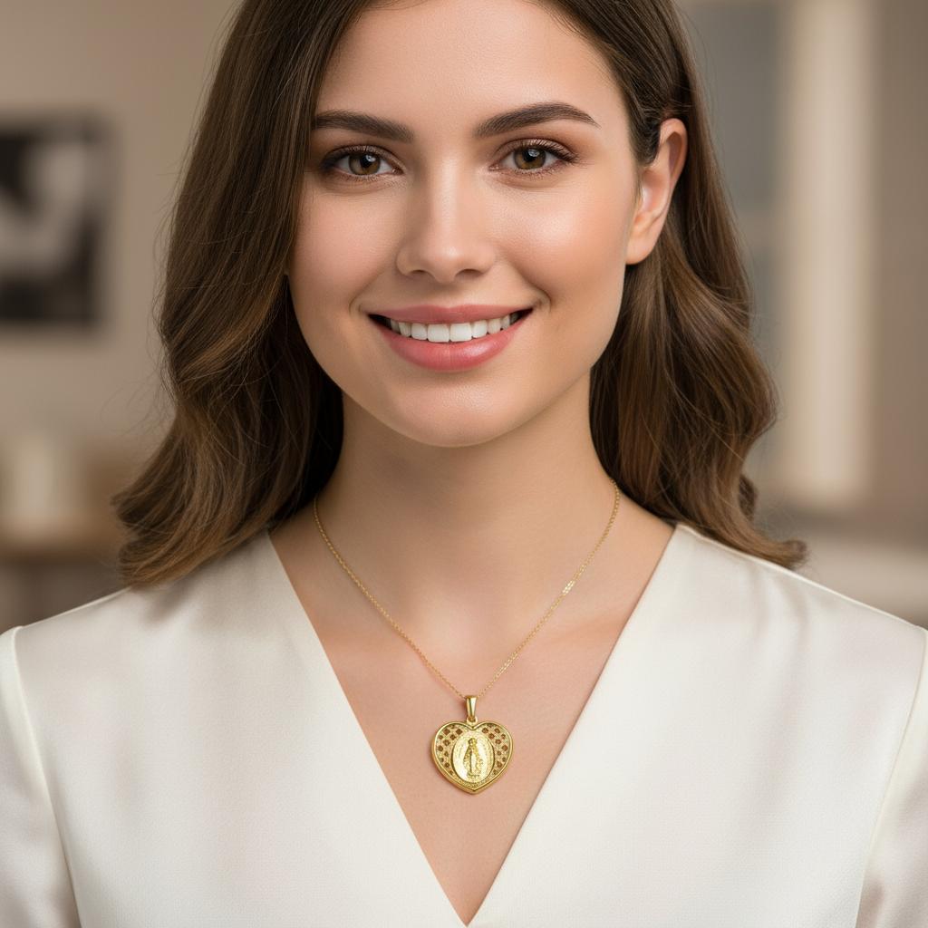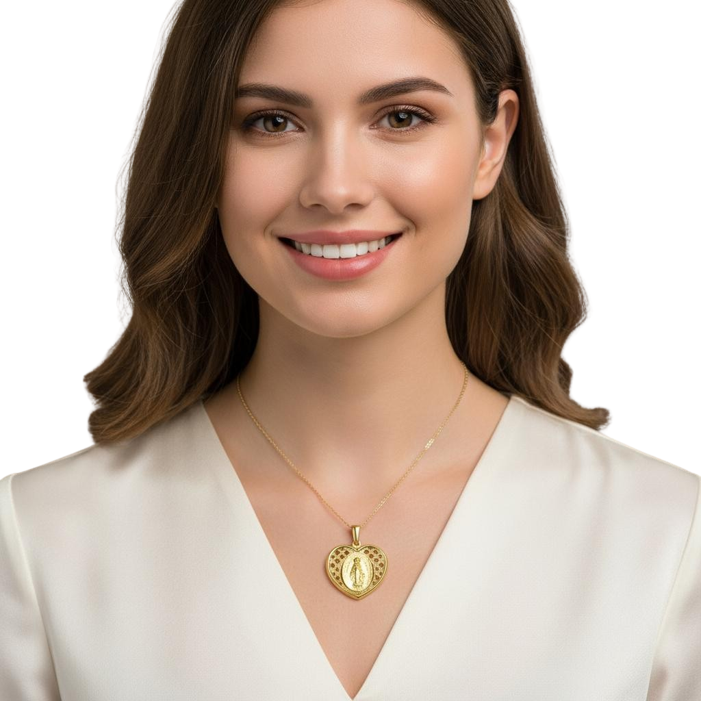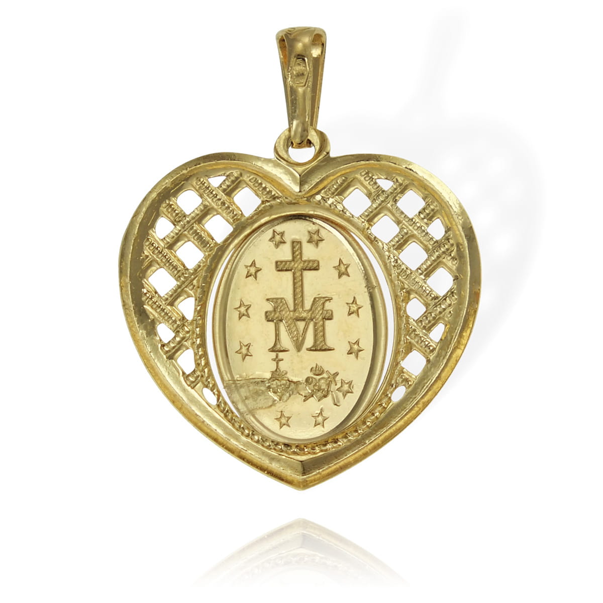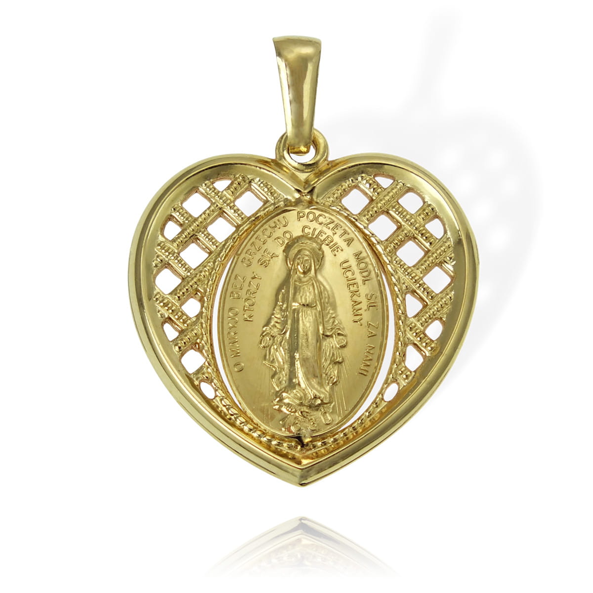 Złoty Ażurowy Medalik Cudowny Niepokalana Matka Boska w Sercu