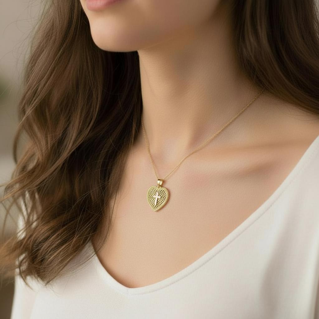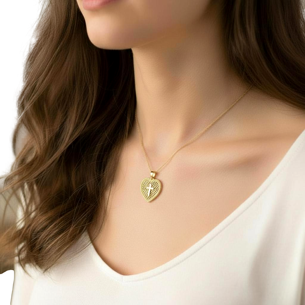 Złoty Ażurowy Wisiorek Krzyż w Sercu - Próba 585