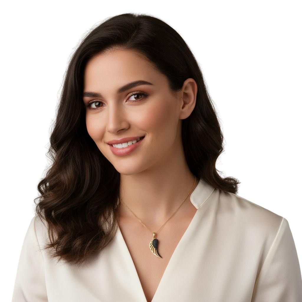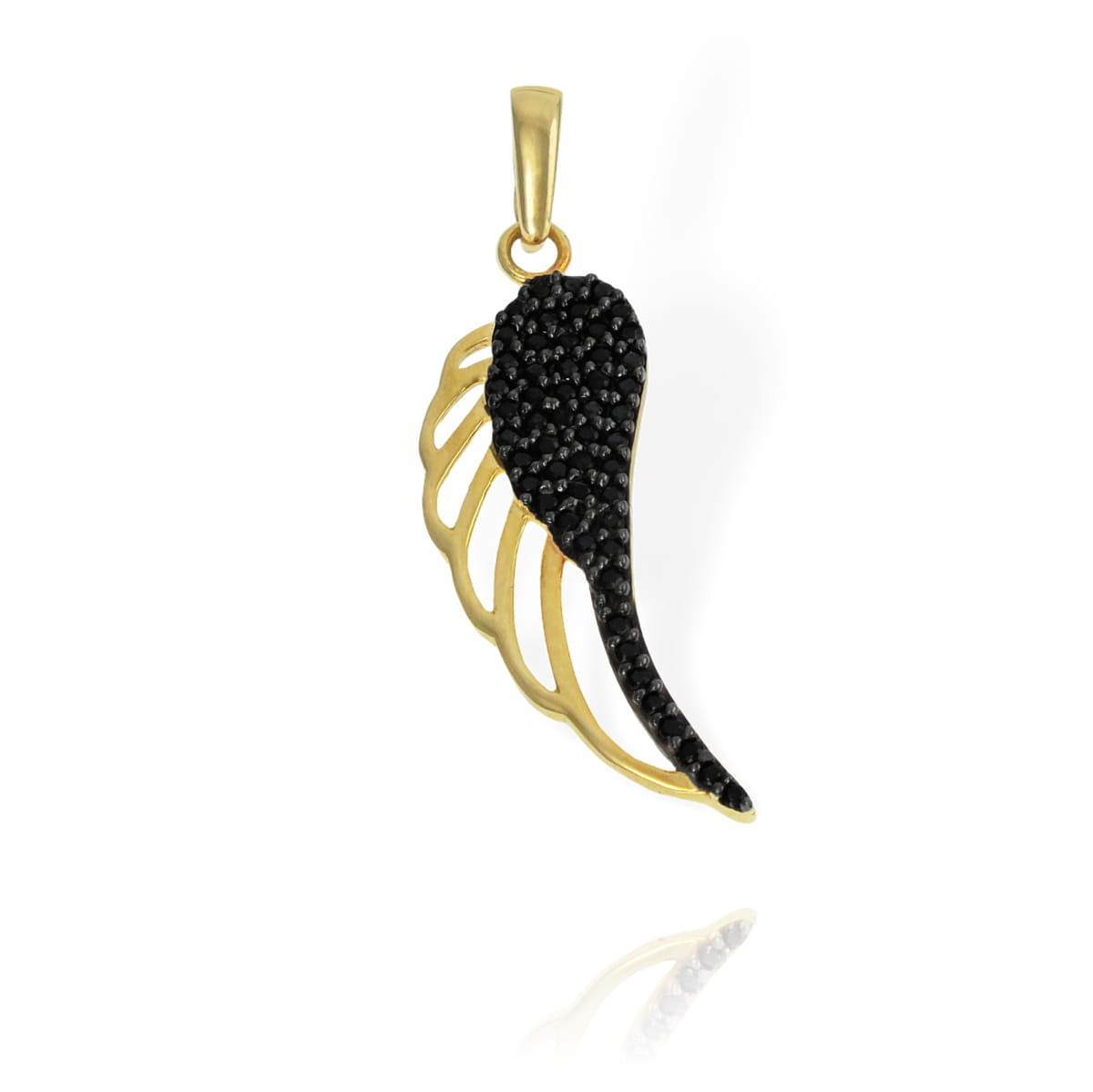 Piękny Złoty Wisiorek Skrzydło z Cyrkoniami !