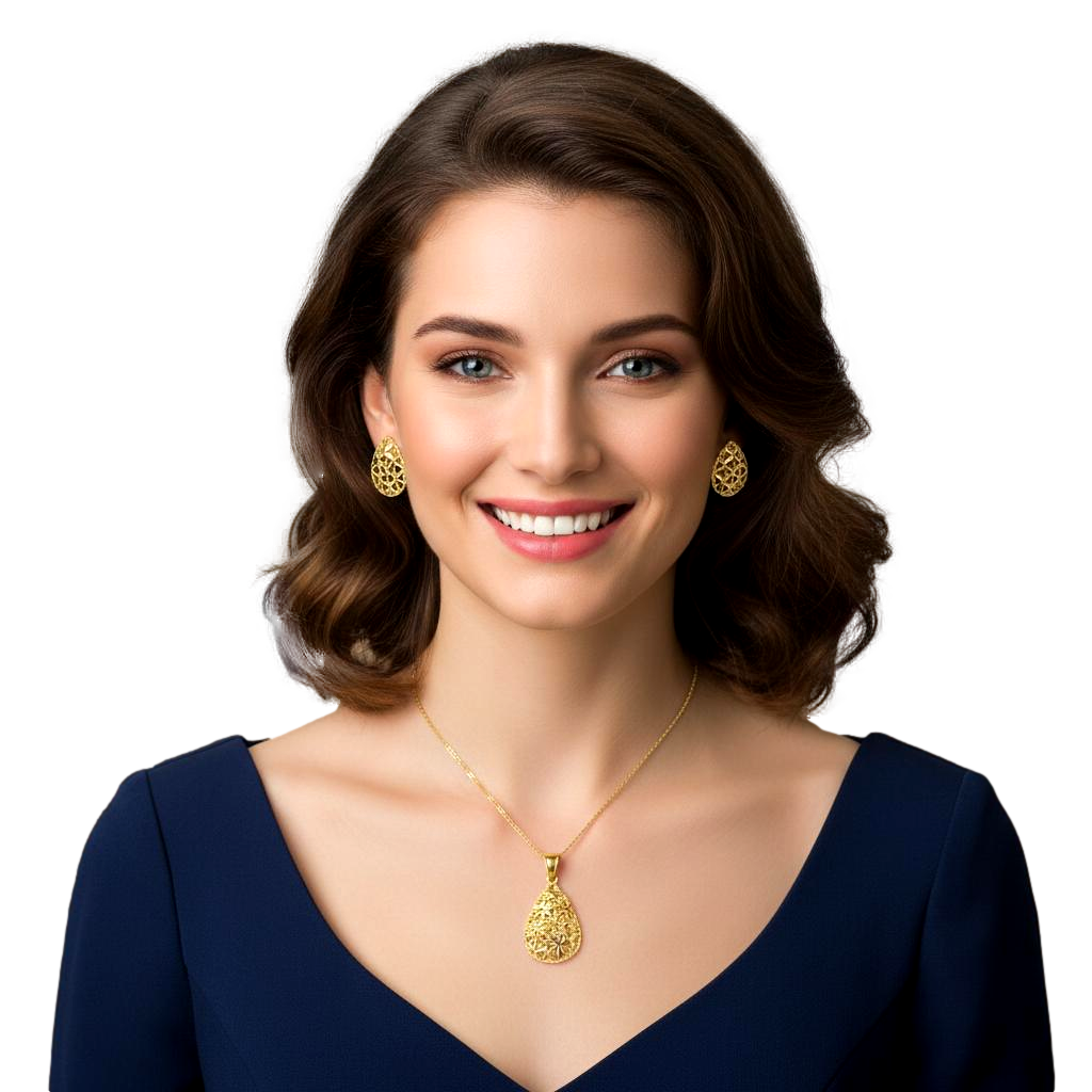 Piękny Ażurowy Złoty Diamentowany Komplet