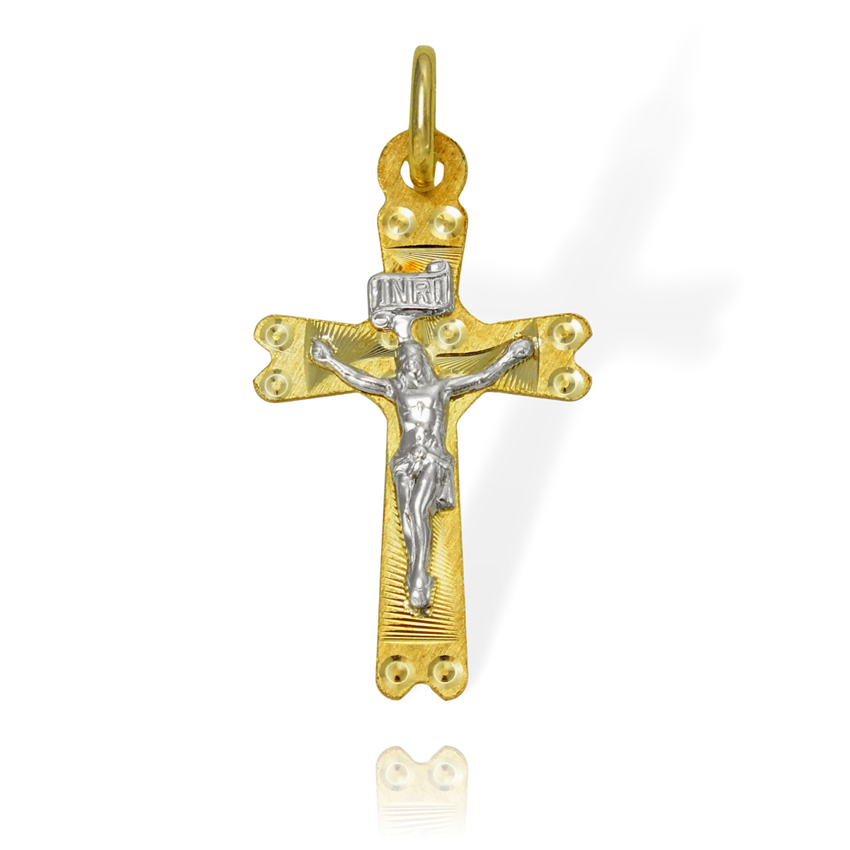 Złoty Diamentowany Krzyż z Jezusem Chrystusem z Białego Złota - Próba 585