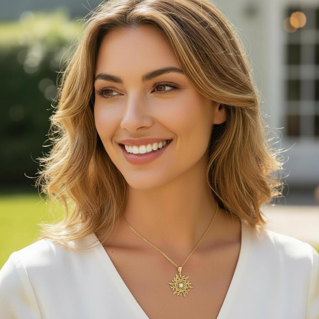 Złoty Diamentowany Wisiorek Słońce - Pr. 585