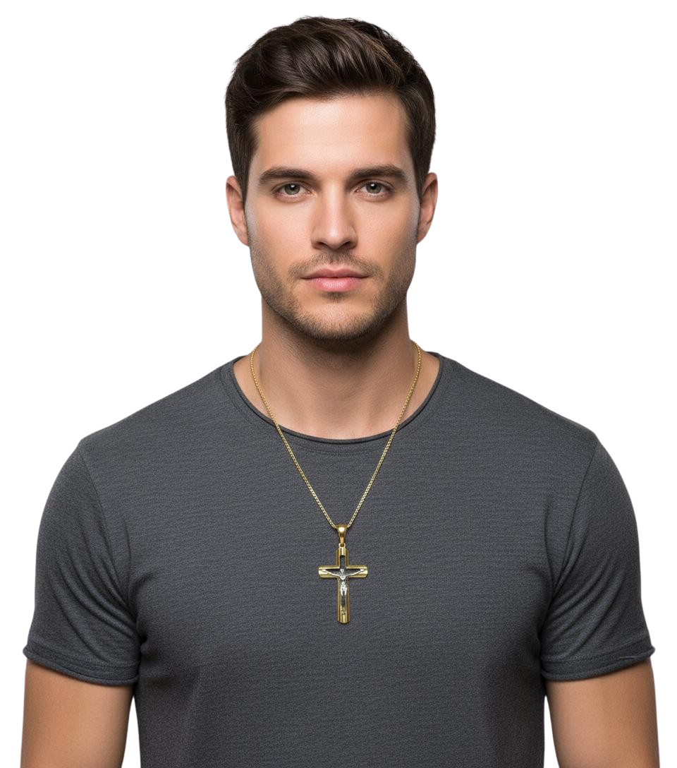 Złoty Duży Krzyż z Jezusem Chrystusem - Próba 585