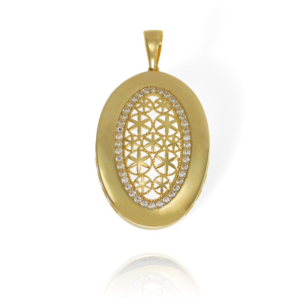 Złoty Efektowny Ażurowy Wisior Wisiorek z Cyrkoniami