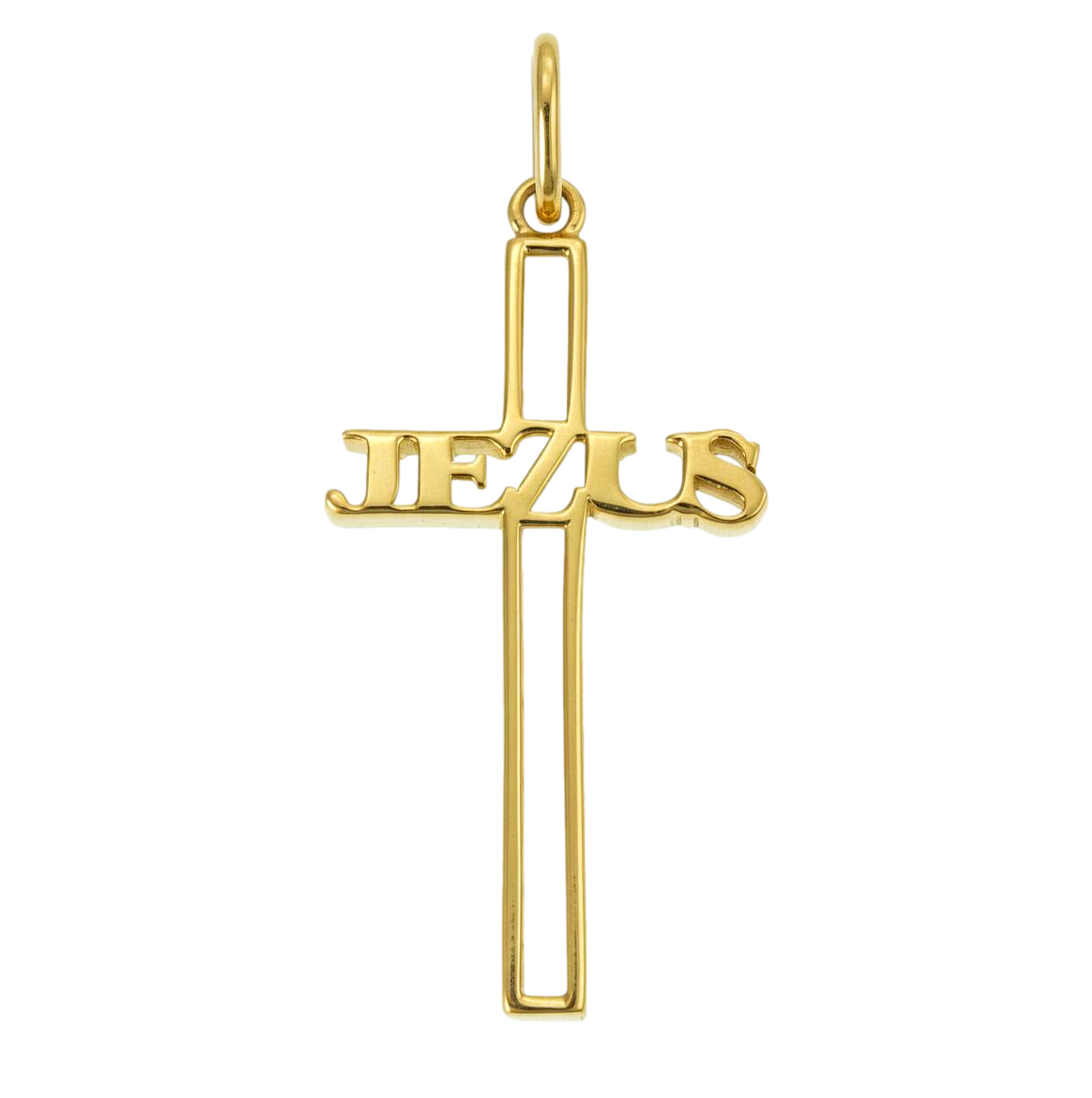 Złoty Krzyż Krzyżyk z Napisem Jezus - Próba 585
