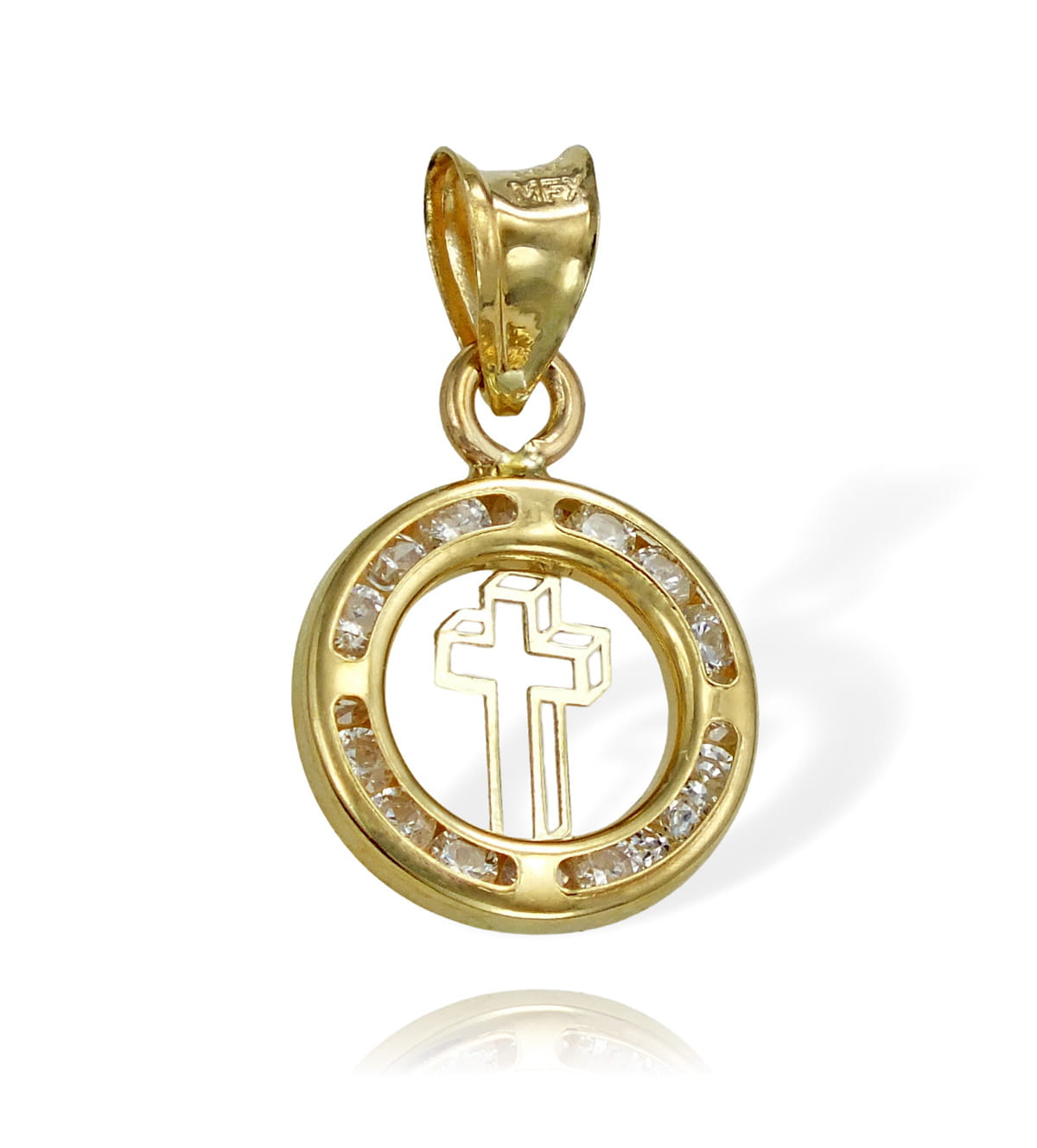 Złoty Medalik Ozdobiony Cyrkoniami z Krzyżykiem - pr. 585