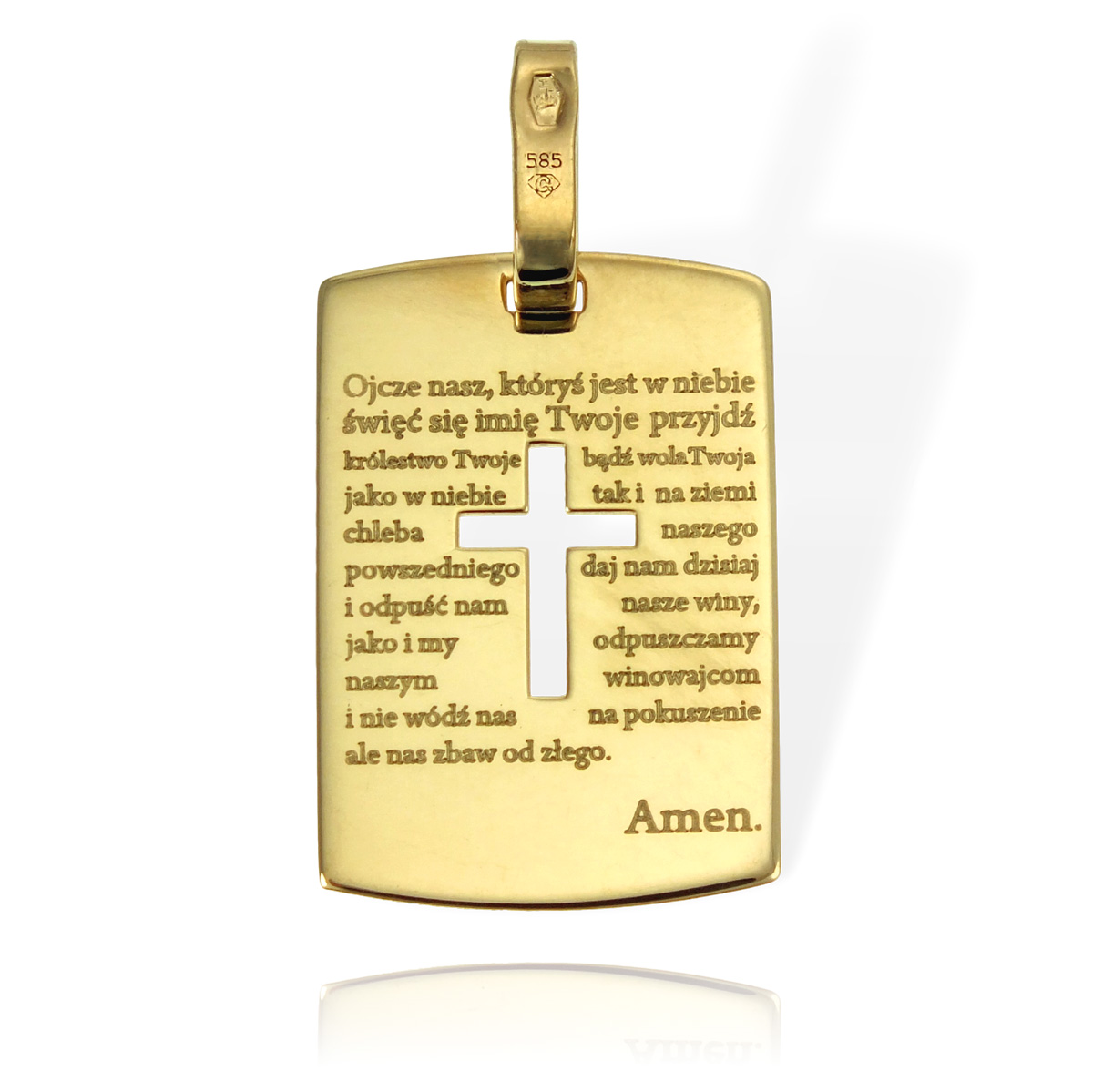 Złoty Medalik z Krzyżem i Modlitwą "Ojcze Nasz"