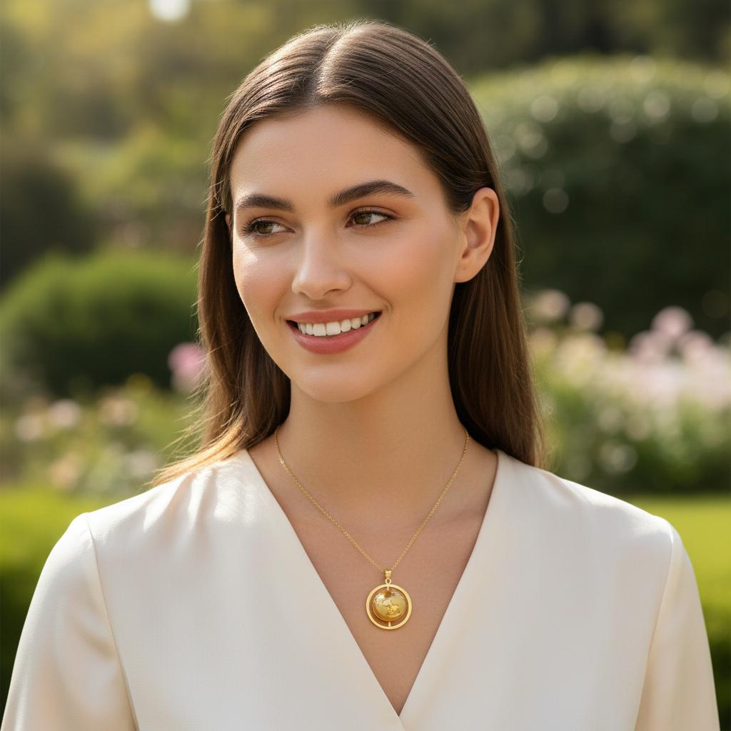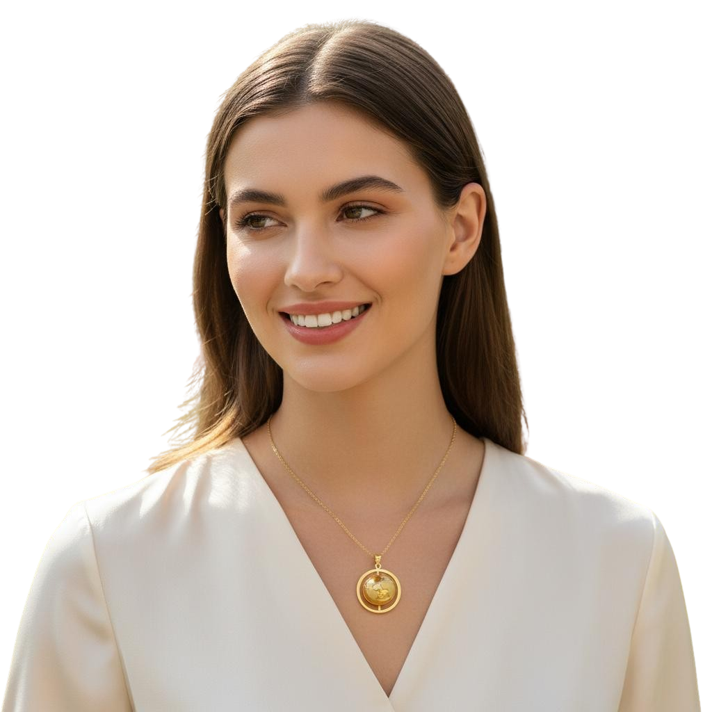 Złoty Obrotowy Wisiorek Globus, Planeta Ziemia