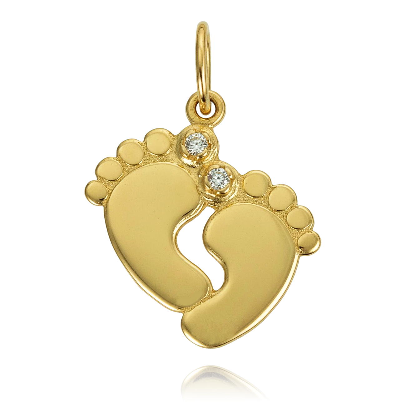 Złoty WIsiorek Stopy Ślady Stóp z Cyrkoniami