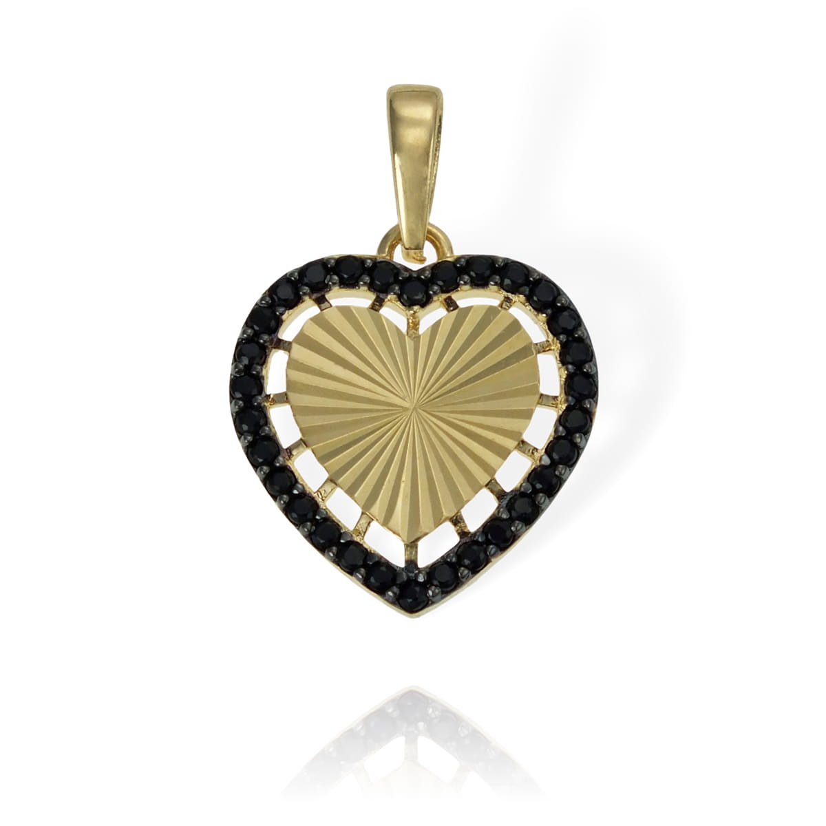 Złoty Wisiorek Diamentowane Serce z Czarnymi Cyrkoniami - Pr. 585