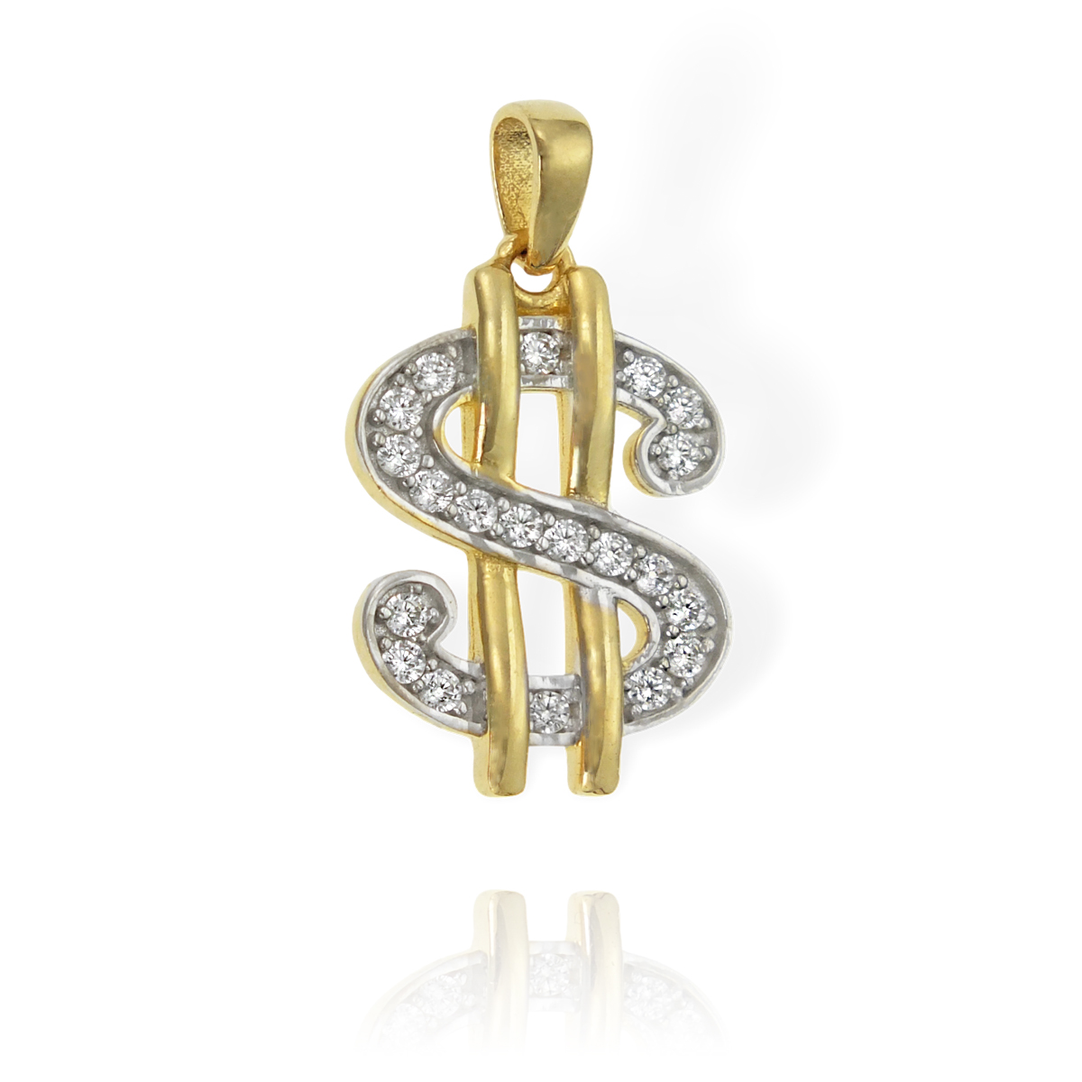 Złoty Wisiorek Dolar Znak Dolara z Cyrkoniami Próba 585