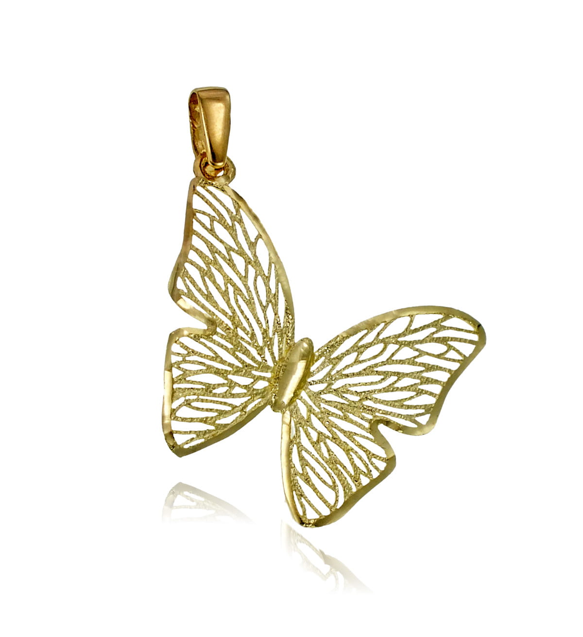 Złoty Wisiorek Efektowny Ażurowy Motyl - Próba 585