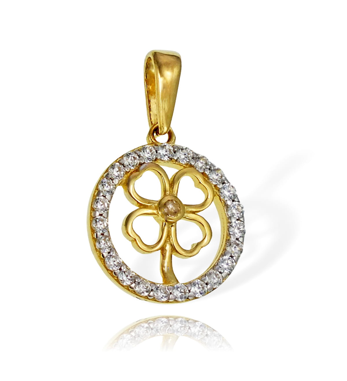 Złoty Wisiorek Koniczynka z Cyrkoniami - Pr. 585
