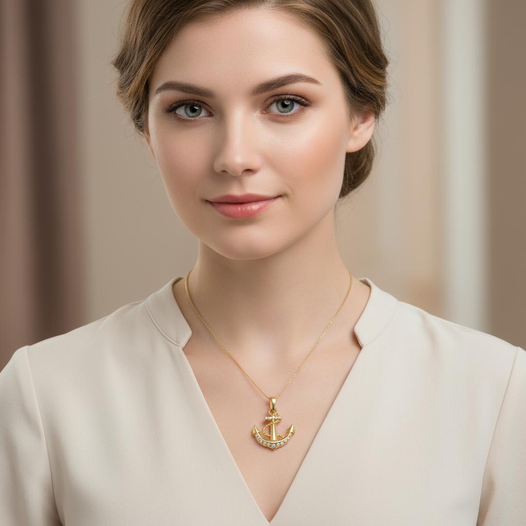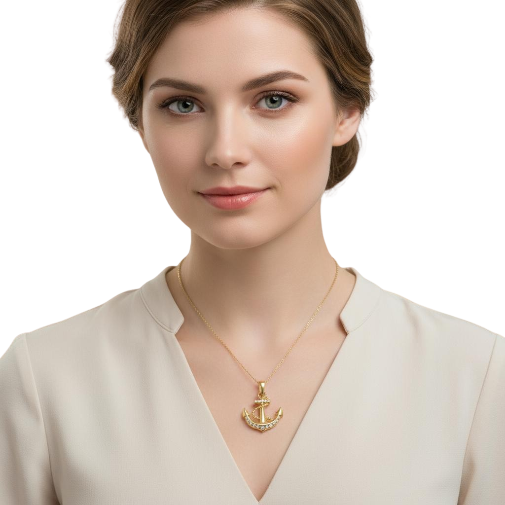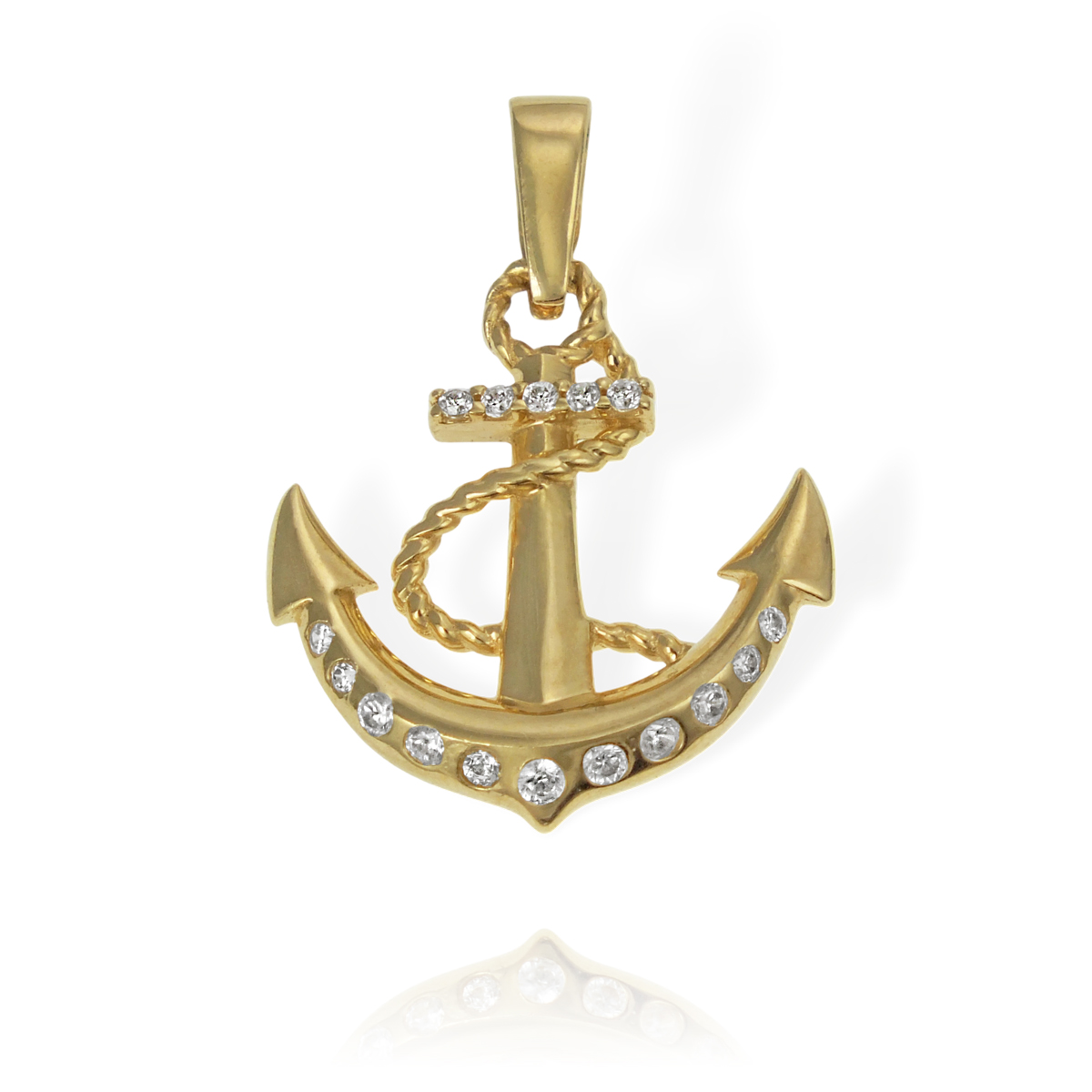 Złoty Wisiorek Kotwica z Cyrkoniami - Pr. 585