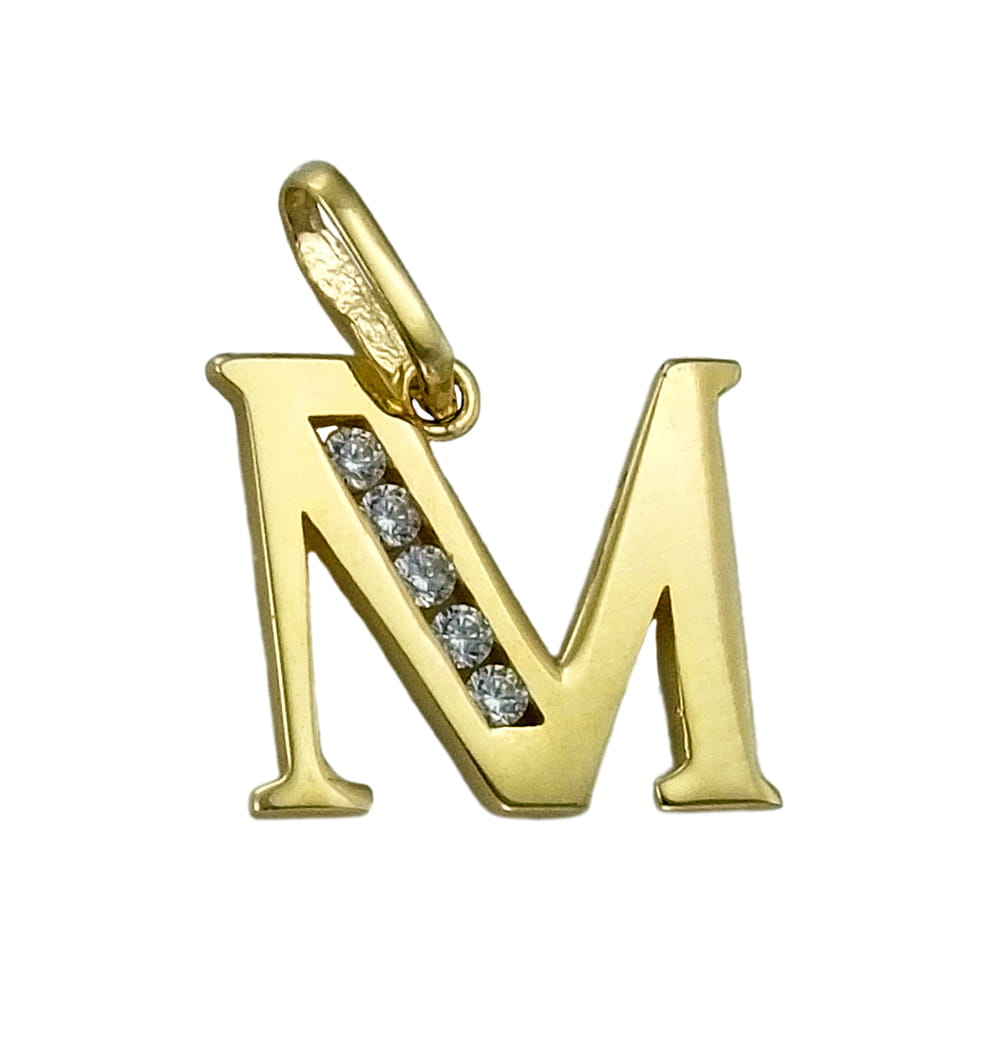 Złoty Wisiorek Literka M z Cyrkoniami - pr. 585