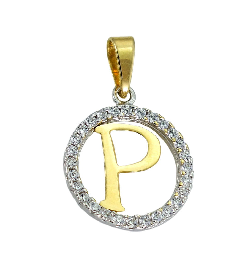 Złoty Wisiorek Literka P z Cyrkoniami - pr. 585