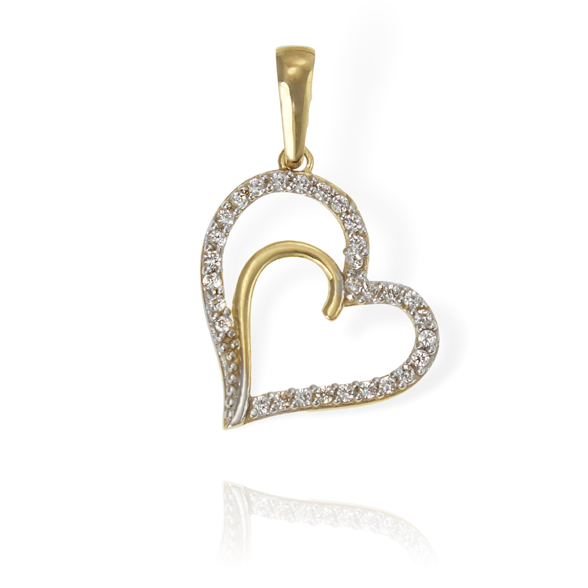 Złoty Wisiorek Serce w Sercu z Cyrkoniami - Pr. 585