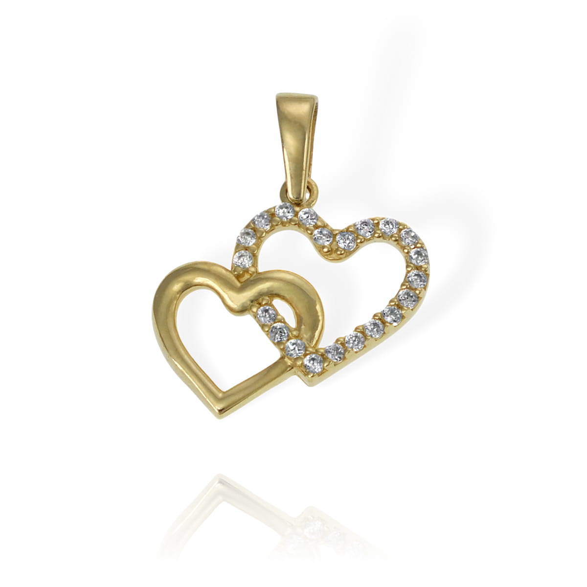 Złoty Wisiorek Złączone Serca z Cyrkoniami - Pr. 585