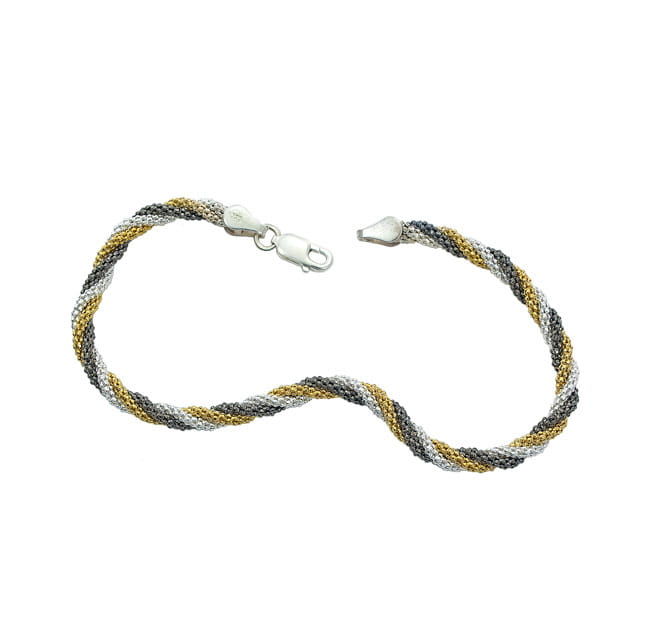 Piękna Srebrna Bransoletka Trzykolorowa !!!
